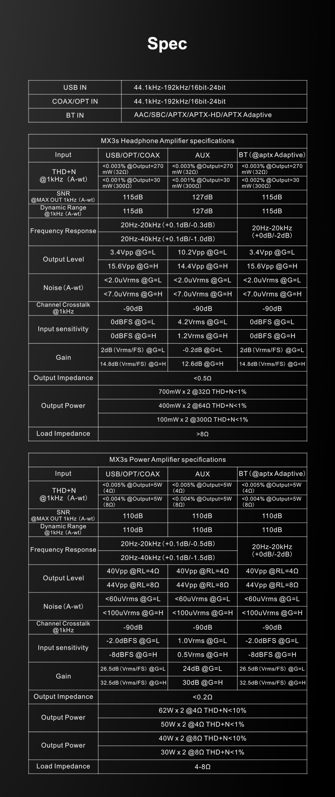 В секции усилителя MX3s используется чип Infineon Merus Class D, поэтому он может передавать мощность 2 x 62 Вт на нагрузке 4 Ом. MX3s также предлагает двухуровневую регулировку усиления, что позволяет настроить его под вашу систему прослушивания.