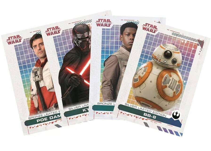 В не такой уж далекой галактике мы добавили в нашу вселенную Topps новое издание под названием «Коллекция «Звездные войны: Скайуокер. Восхождение»!» Мы с гордостью представляем официальные коллекционные карточки «Звездных войн»! В этой коллекции есть специальные карты с изображением ваших любимых персонажей, таких как Рей, BB-8, Кайло Рен, а также самых знаковых персонажей, таких как Дарт Вейдер, Люк Скайуокер, Йода, R2-D2 и многих других!