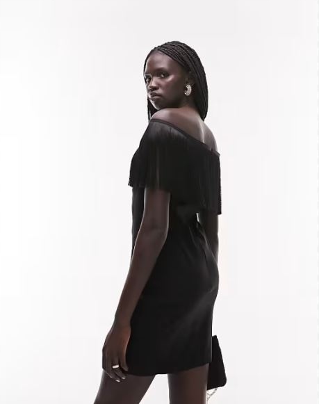 TOPSHOP ЧЕРНОЕ МИНИ-ПЛАТЬЕ С БАХОЙ (44)