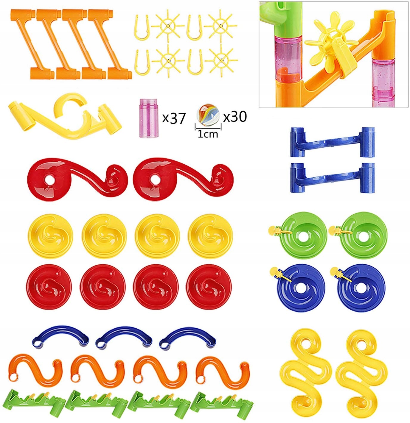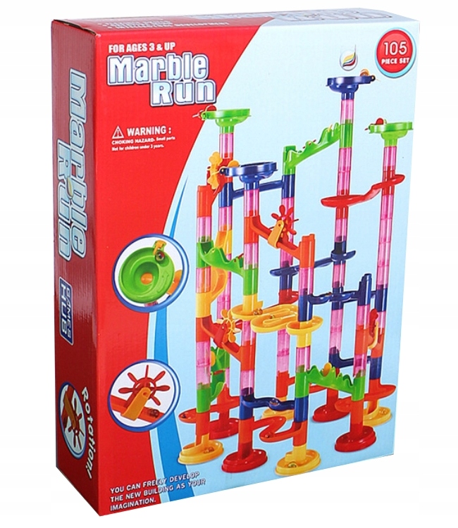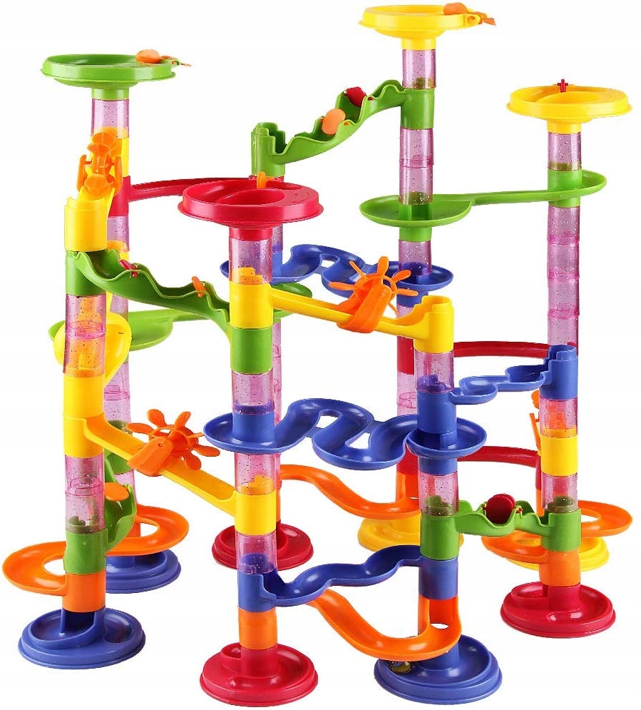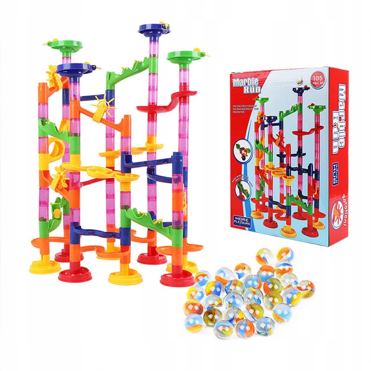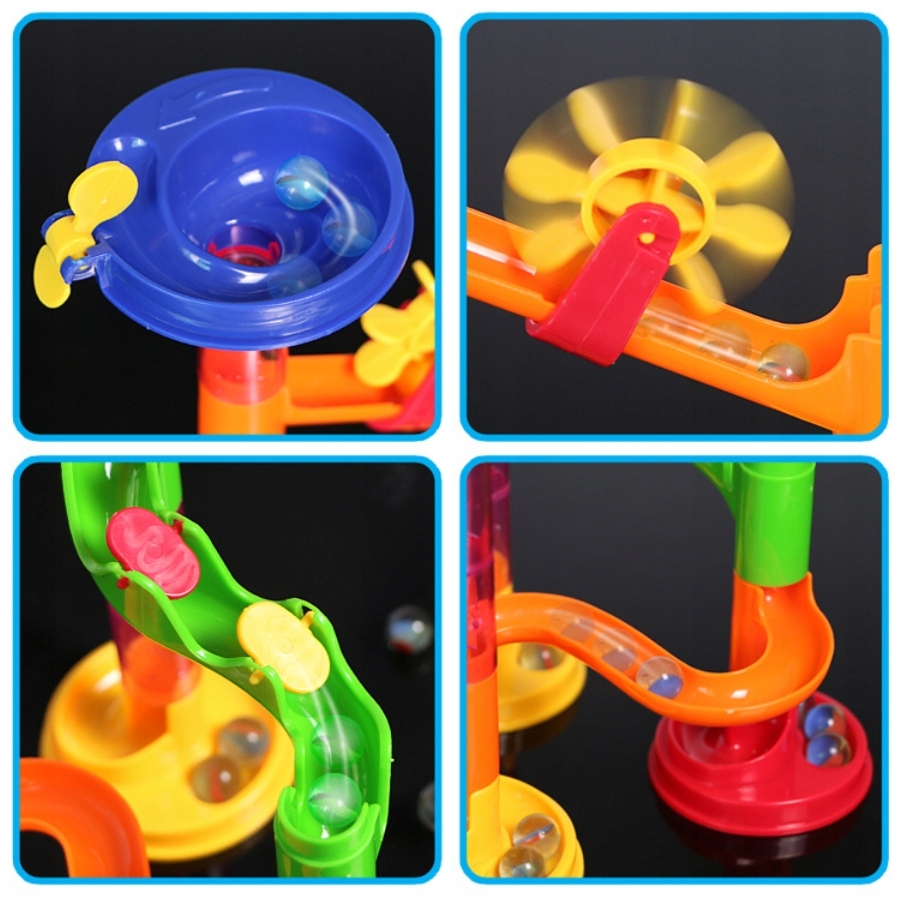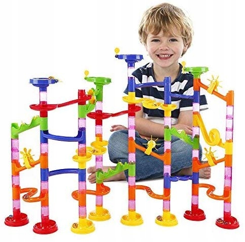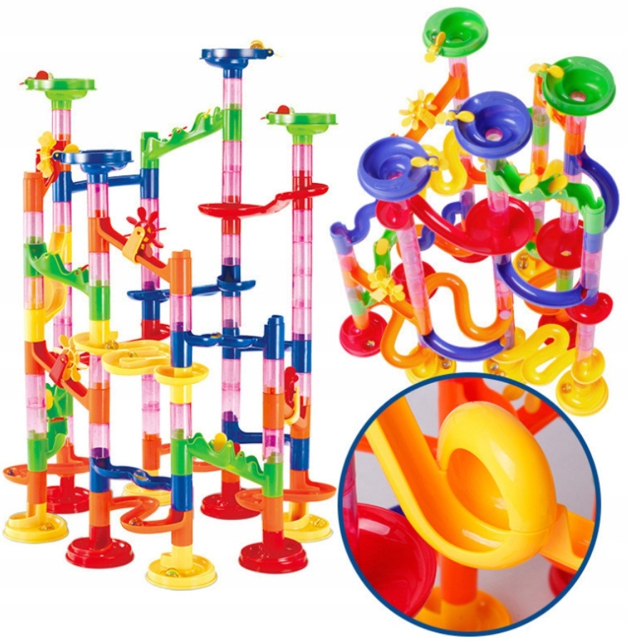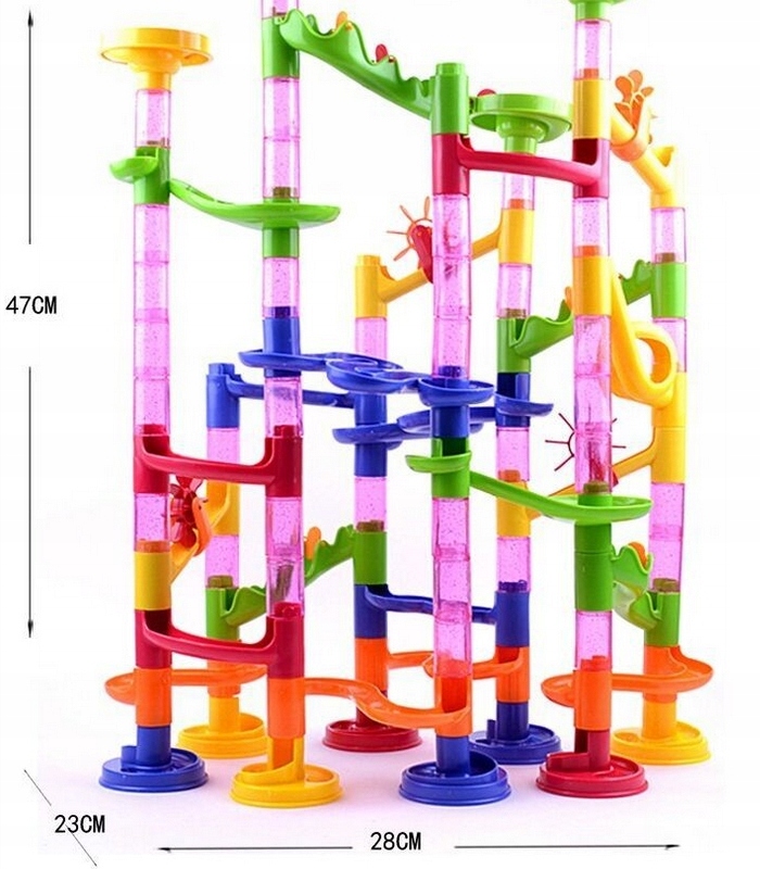 TOR KULKOWY KULODROM ZESTAW KLOCKI KONSTRUKCYJNE Zjeżdżalnia + KULKI 30 szt
