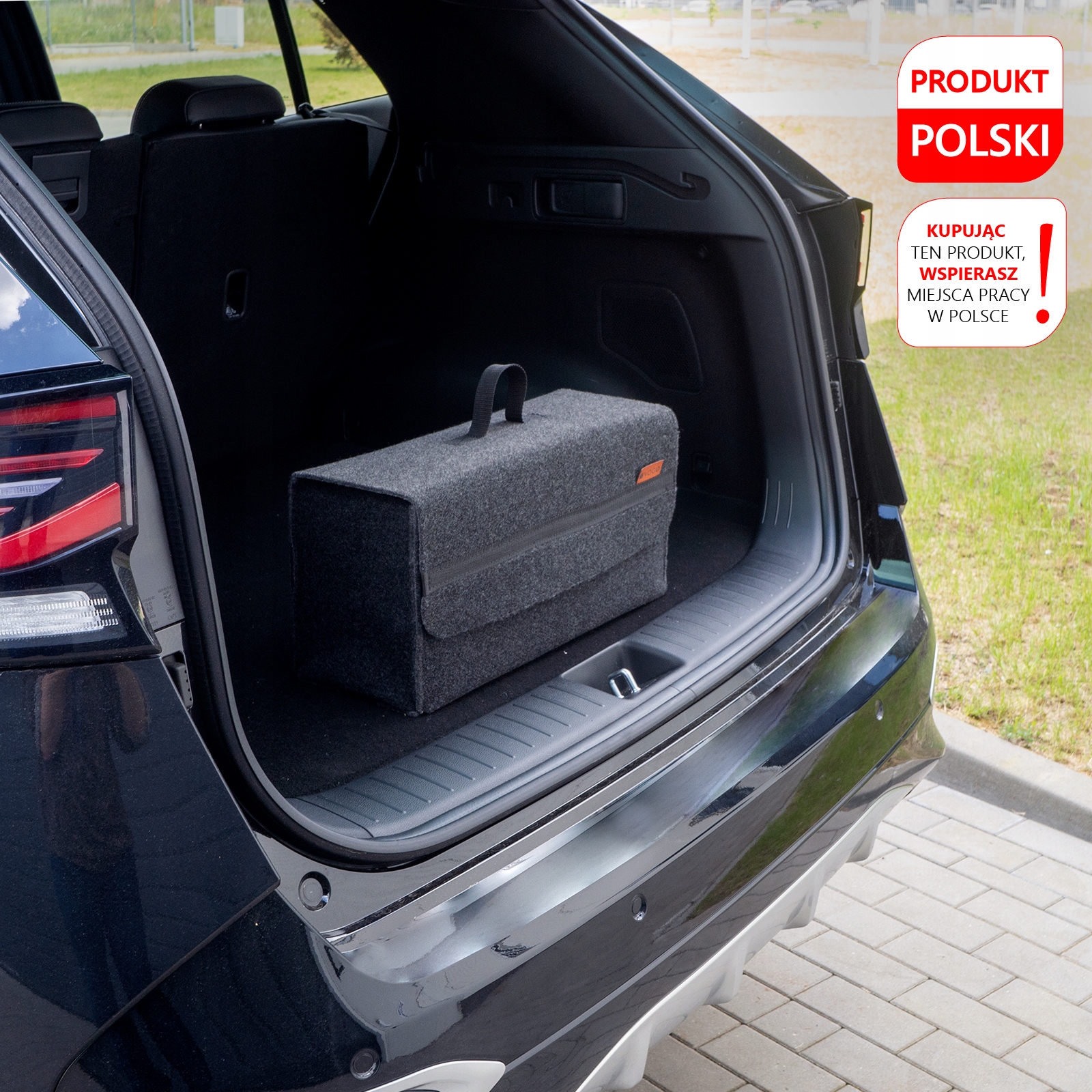 Torba do bagażnika welurowa duża ciemo szara na narzędzia zakupy na rzep
