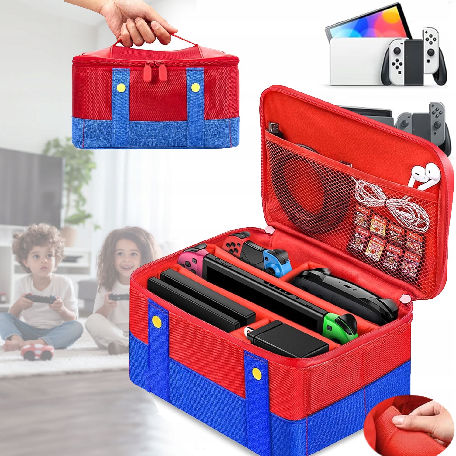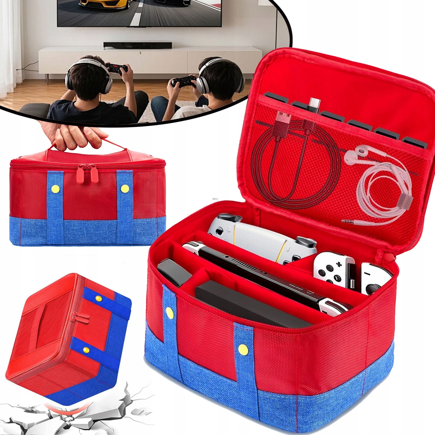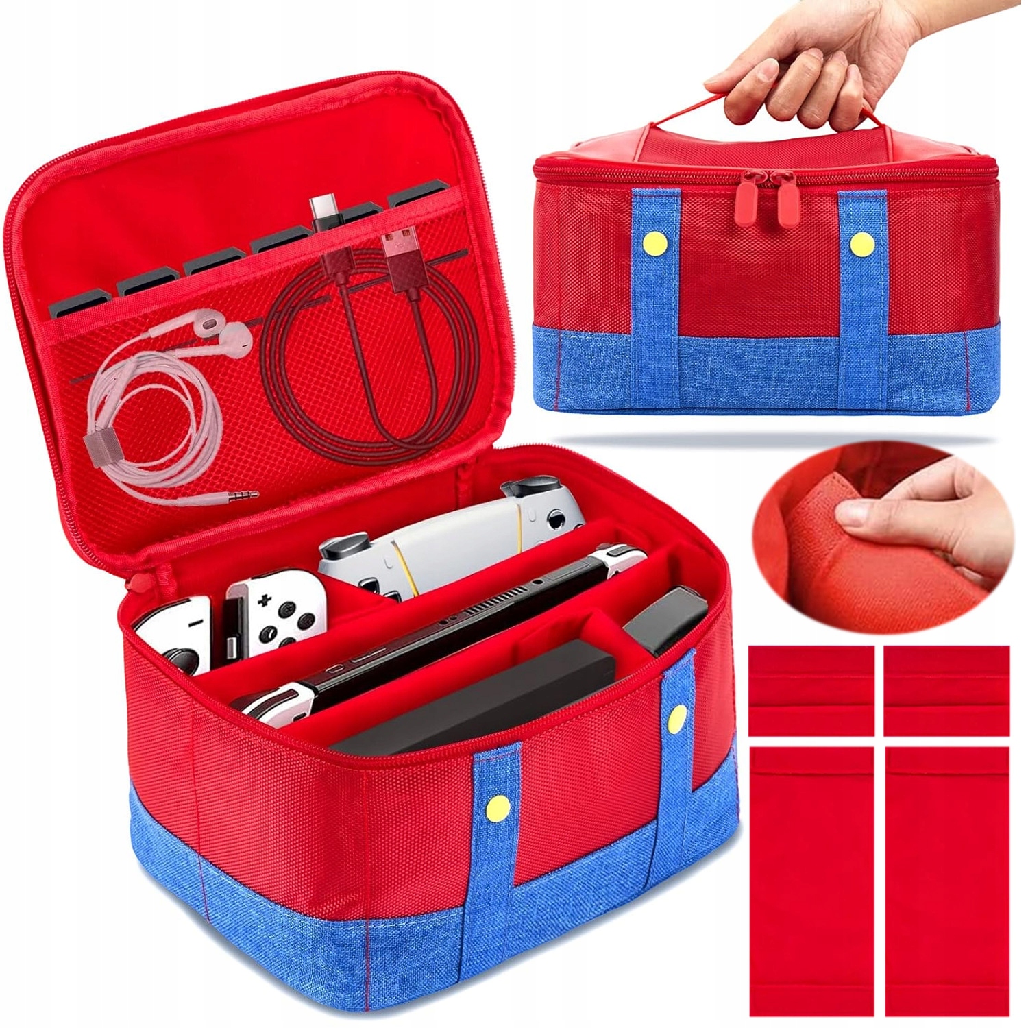 -Благодаря большой вместимости и отделениям вы можете легко хранить различные аксессуары, такие как адаптер переменного тока, контроллеры, зарядное устройство, игровые карты, наушники и т. д., чтобы вы могли держать все свое оборудование в порядке.
