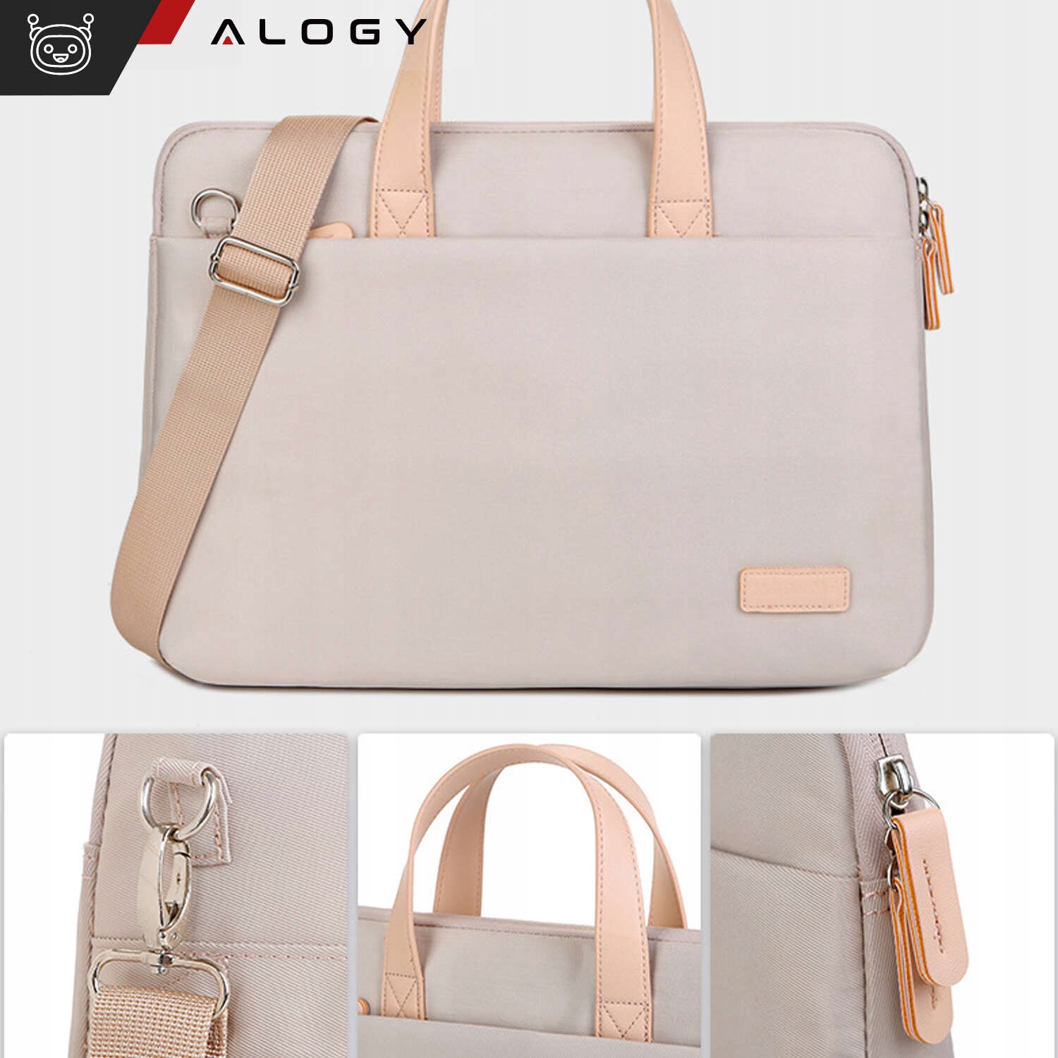▶️ Мужская и женская сумка-портфель через плечо для ноутбука, планшета 14 дюймов, тканевый дорожный чехол Alogy Beige