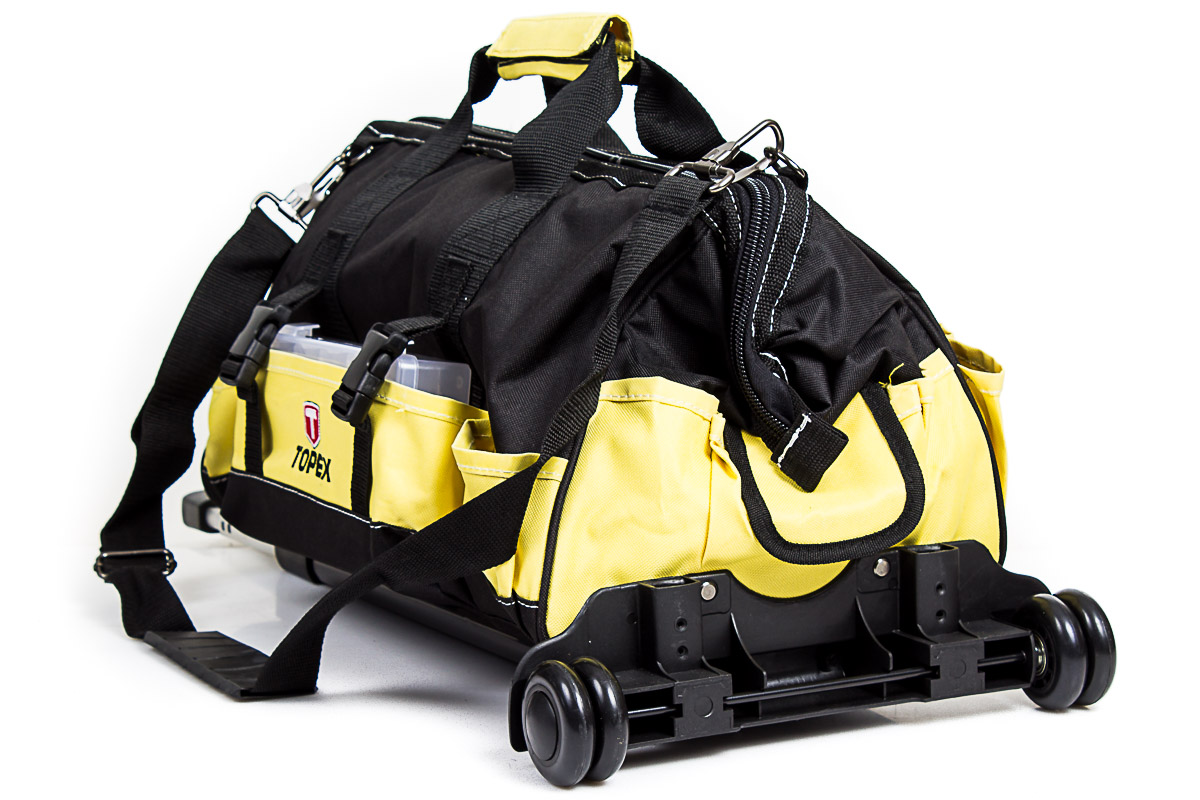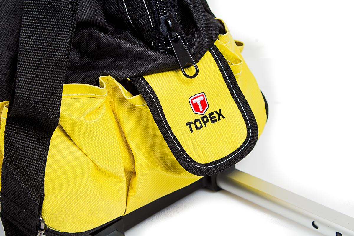 Сборная сумка Topex на колесиках (арт. № 79R449) изготовлена из прочного полиэстера, гарантирующего длительный срок службы сумки.