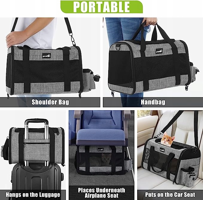 - Портативный и складной дизайн позволяет легко брать с собой домашних животных и легко хранить. Независимо от того, ведете ли вы своих питомцев к ветеринару или берете их в путешествие. 2 способа использования, а также регулируемый плечевой ремень для переноски без помощи рук.