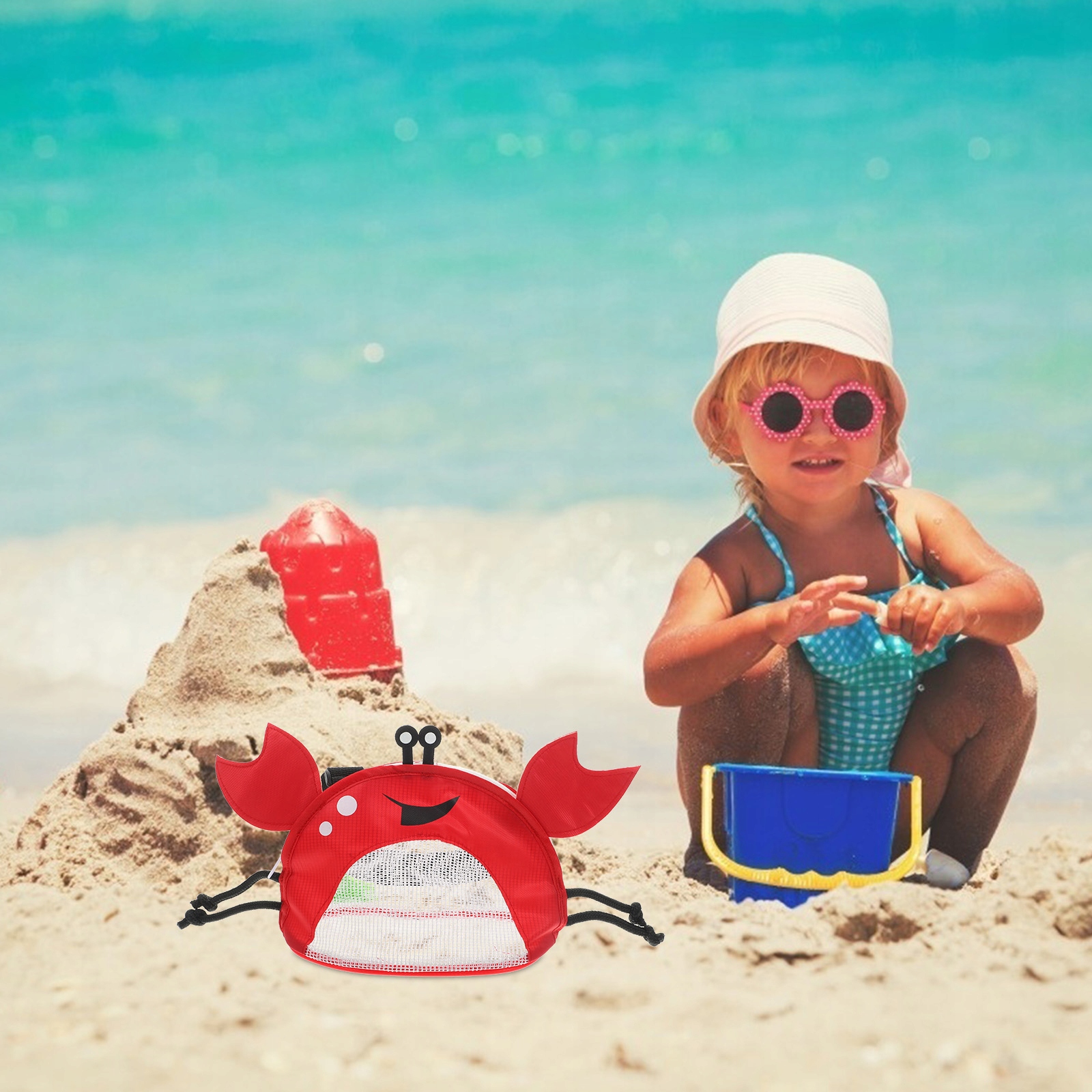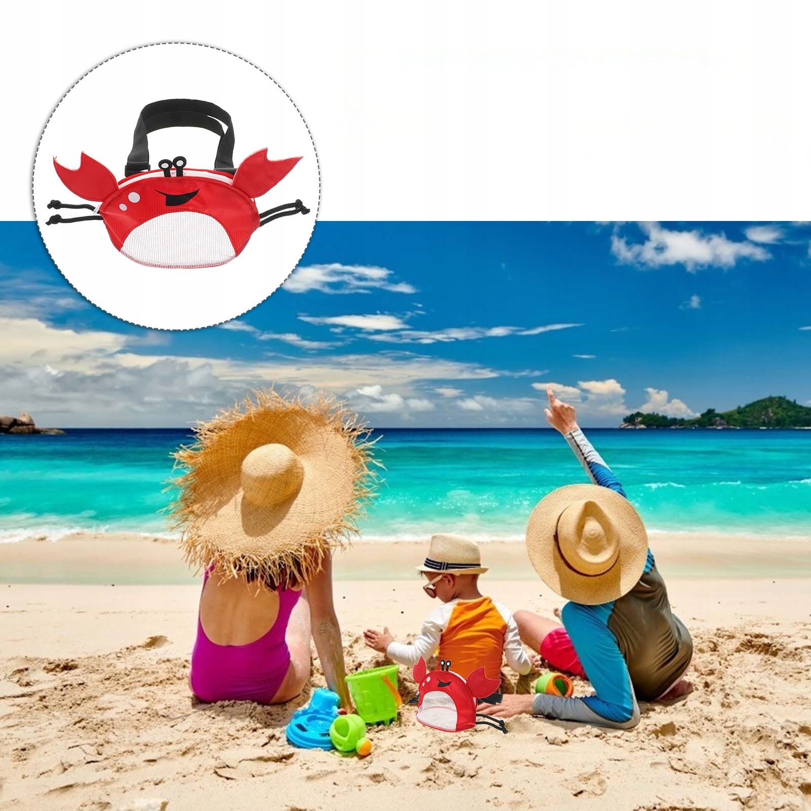 TORBA PLAŻOWA DZIECI ZBIERANIE MUSZLI WOREK SIATKOWY I PRZENOŚNA