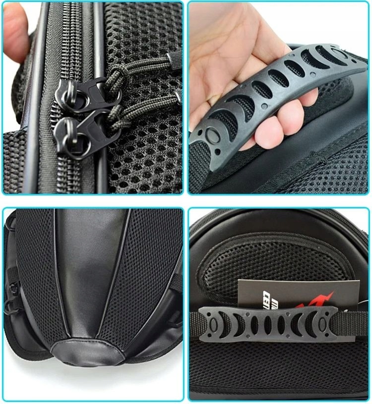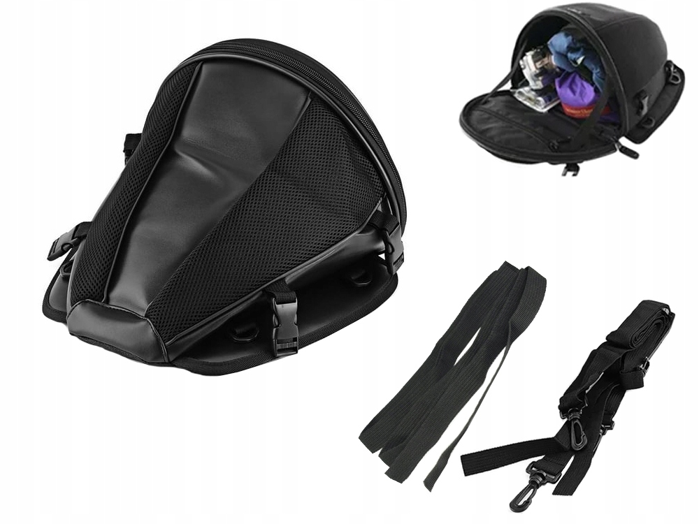 Подходит для большинства мотоциклов, застегивается на регулируемые пряжки. Его также можно использовать как сумку через плечо.