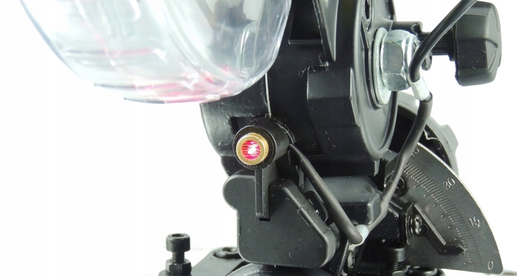 - Возможность косого реза под углом 45° влево, оснащен лазерным маркером, указывающим линию реза.