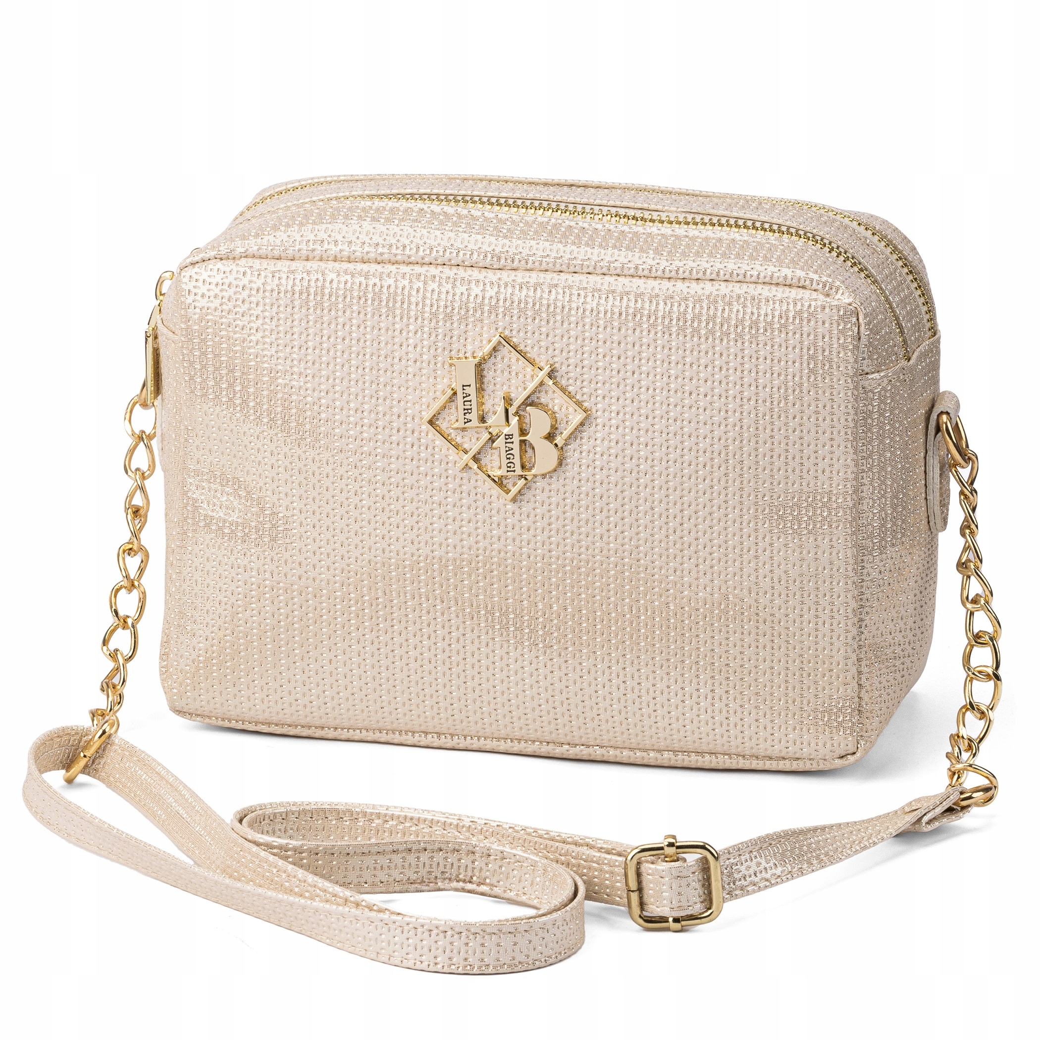 TOREBKA DAMSKA LISTONOSZKA LAURA BIAGGI ZŁOTA Z ŁAŃCUSZKIEM NA RAMIĘ Z LOGO