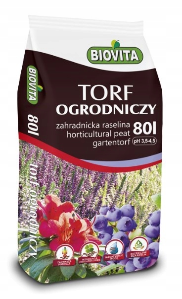 Торф садовый Biovita – это правильно подобранный природный верховой торф, с различной степенью разложения. Значительно улучшает качество и структуру почвы, а также состояние воздуха и воды. pH садового торфа колеблется от 3,5 до 4,5.
