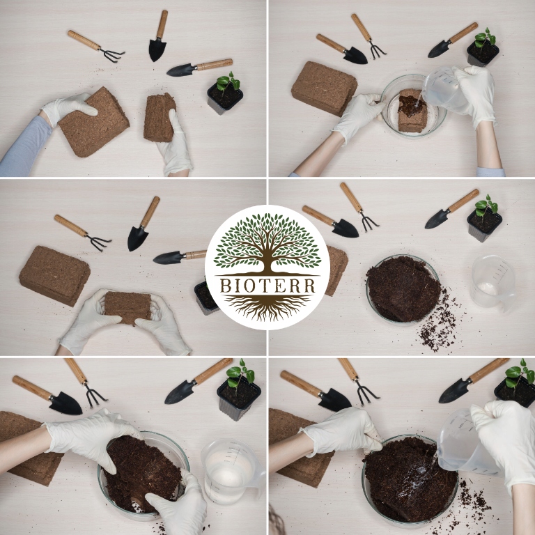 <р>1. Поместите брикеты в большой контейнер. <р>2. Залейте примерно **3–4 литрами воды**. <р>3. Оставьте на несколько минут, пока волокна кокоса не впитают воду и не увеличатся в объеме. <р>4. Перемешайте субстрат до получения однородной структуры. <р>5. Готовый субстрат можно использовать непосредственно для растений или в качестве добавки к почве.✅ Характеристики продукта