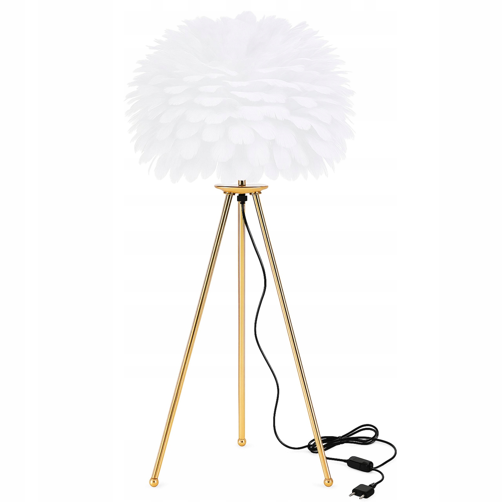 <ул> <ли> Роскошный дизайн — абажур из белого пера и золотая основа — сочетание класса и современности. <ли> Эффективное украшение - высота 145 см, сильный акцент в интерьере. <ли> Свет настроения — перья мягко рассеивают свет, создавая теплую, уютную атмосферу. <ли> Стабильная и прочная конструкция — металлический штатив обеспечивает надежное позиционирование. <ли> Длинный кабель с выключателем — 3 метра кабеля обеспечивают большую свободу в размещении лампы. <ли> Стандартная розетка E27 – легкая замена лампочки по вашему желанию (в комплект не входит).📌 Технические характеристики:
