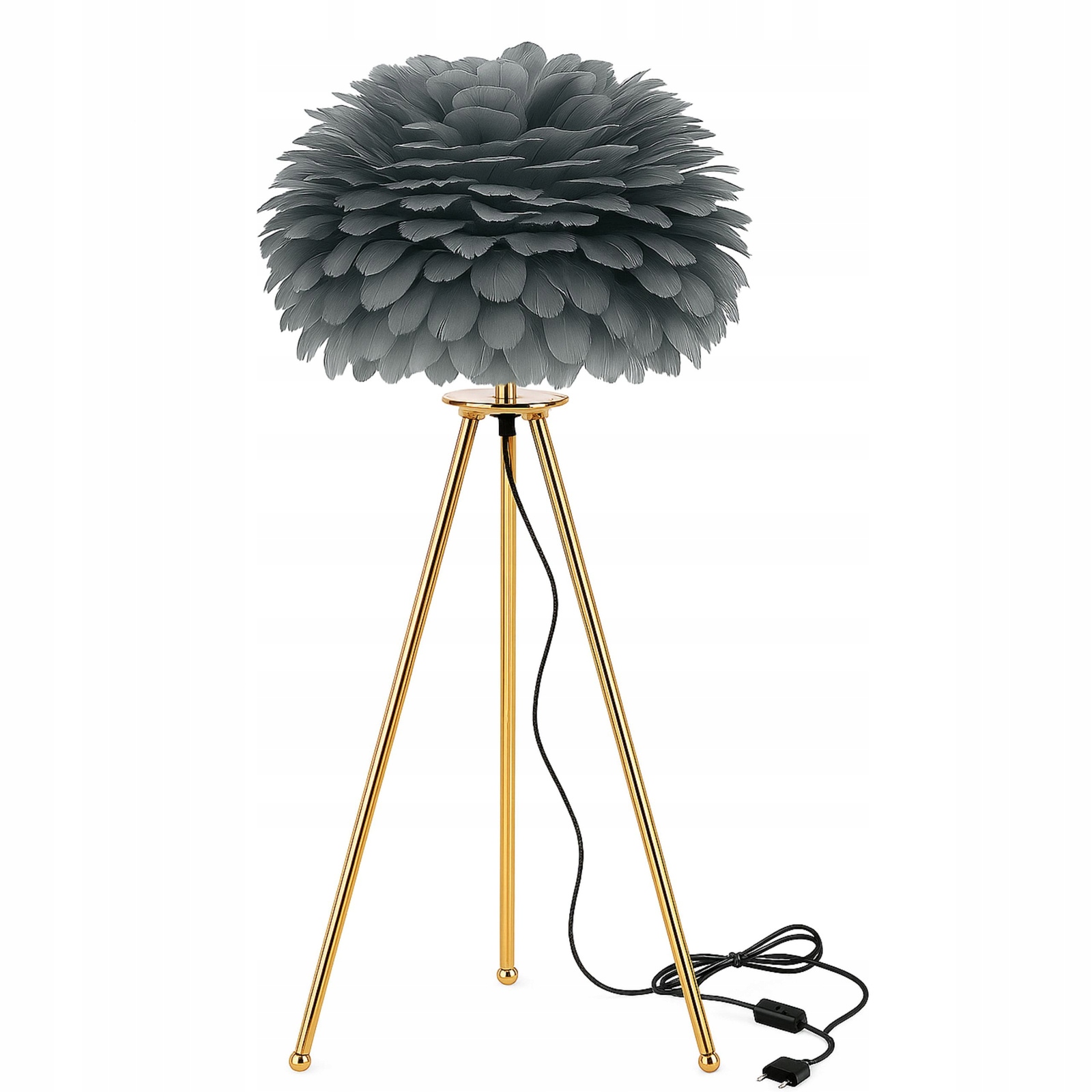 <ул> <ли> Современная элегантность – серый абажур добавляет интерьеру изысканности и универсальности. <ли> Стильный и функциональный – идеален в качестве основного светового украшения в комнате. <ли> Атмосферный свет — перья мягко рассеивают свет, создавая теплую атмосферу. <ли> Устойчивая конструкция - металлическая основа золотого цвета гарантирует долговечность и эстетику. <ли> Длинный кабель с выключателем — 3-метровый кабель дает полную свободу в размещении лампы. <ли> Стандартная резьба Е27 – позволяет подобрать лампочку по вашим предпочтениям (в комплект не входит).📌 Технические характеристики: