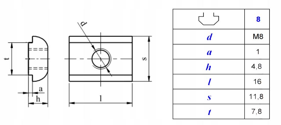 Если для вас главное цена - конечно, молотковые гайки будут хорошим выбором (их вы найдете в другом магазине). аукцион). Однако эта гайка очень удобна тем, что ее можно прикрепить в любом месте профиля (не обязательно вставлять ее по концам, а можно прикрепить сверху в любом месте).