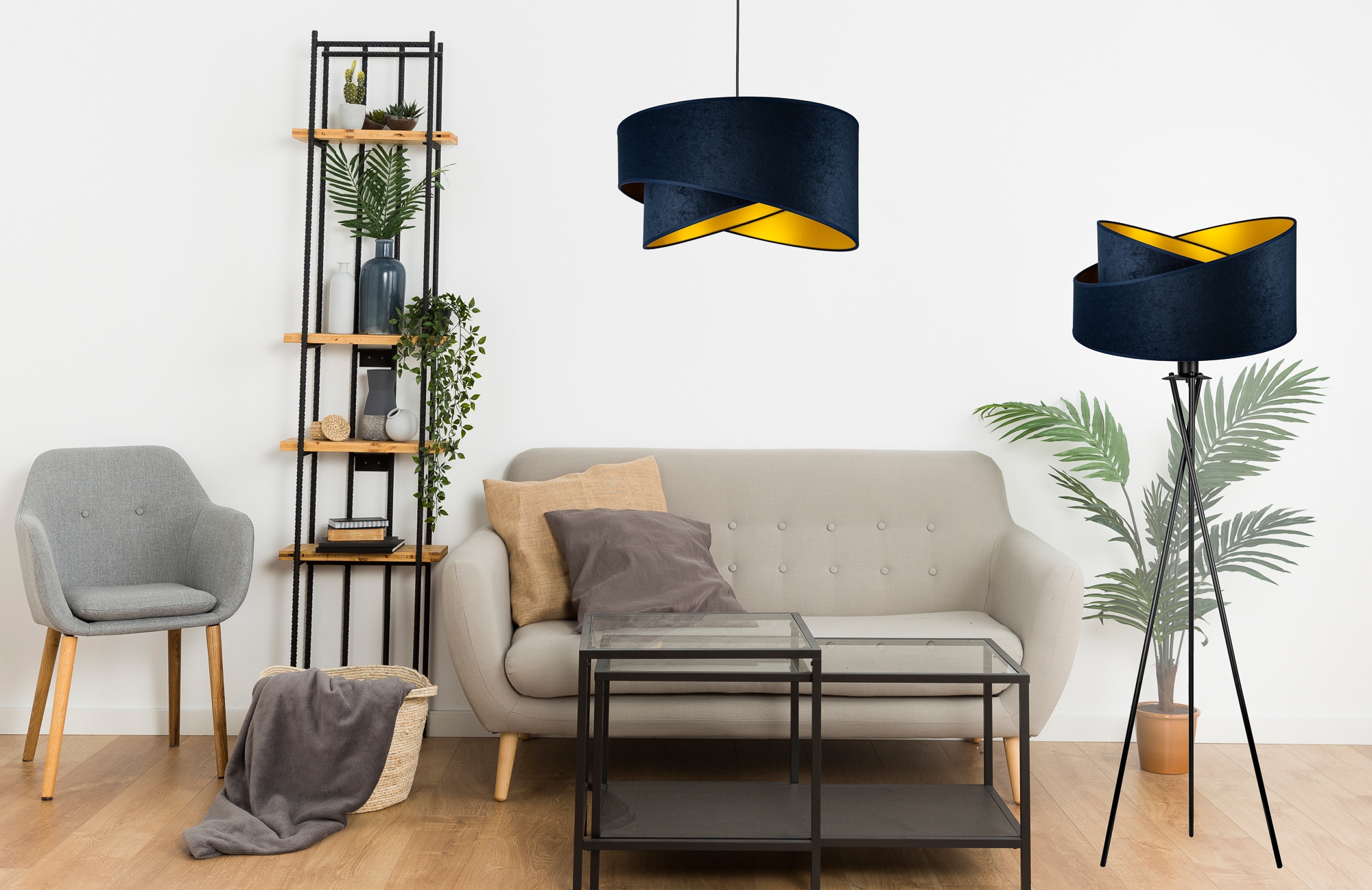 Абажур выполнен из двух видов материалов. Внешний материал выполнен из бархата, роскошной ткани, приятной на ощупь, внутренний - ПВХ-материал матового золота.