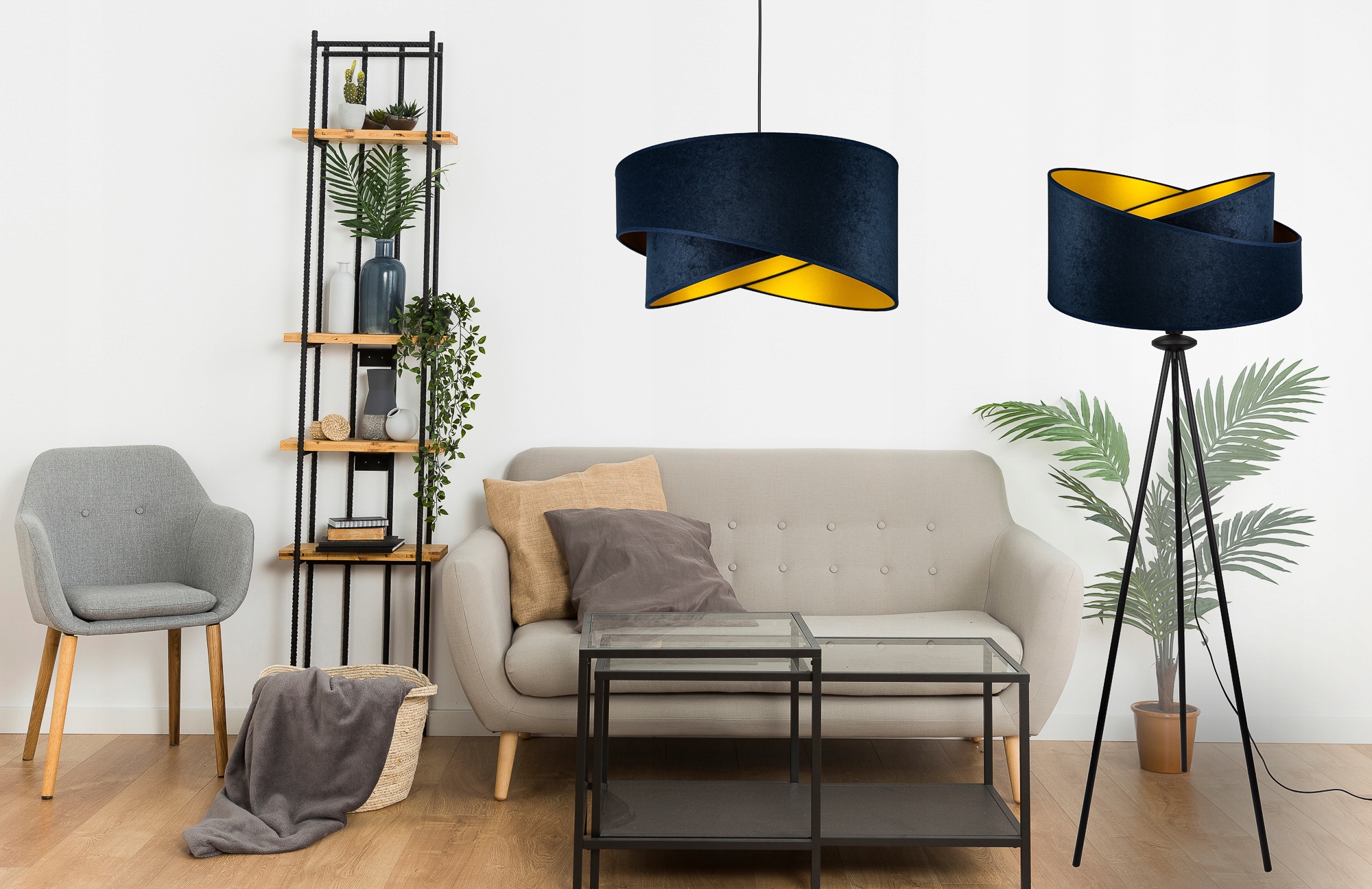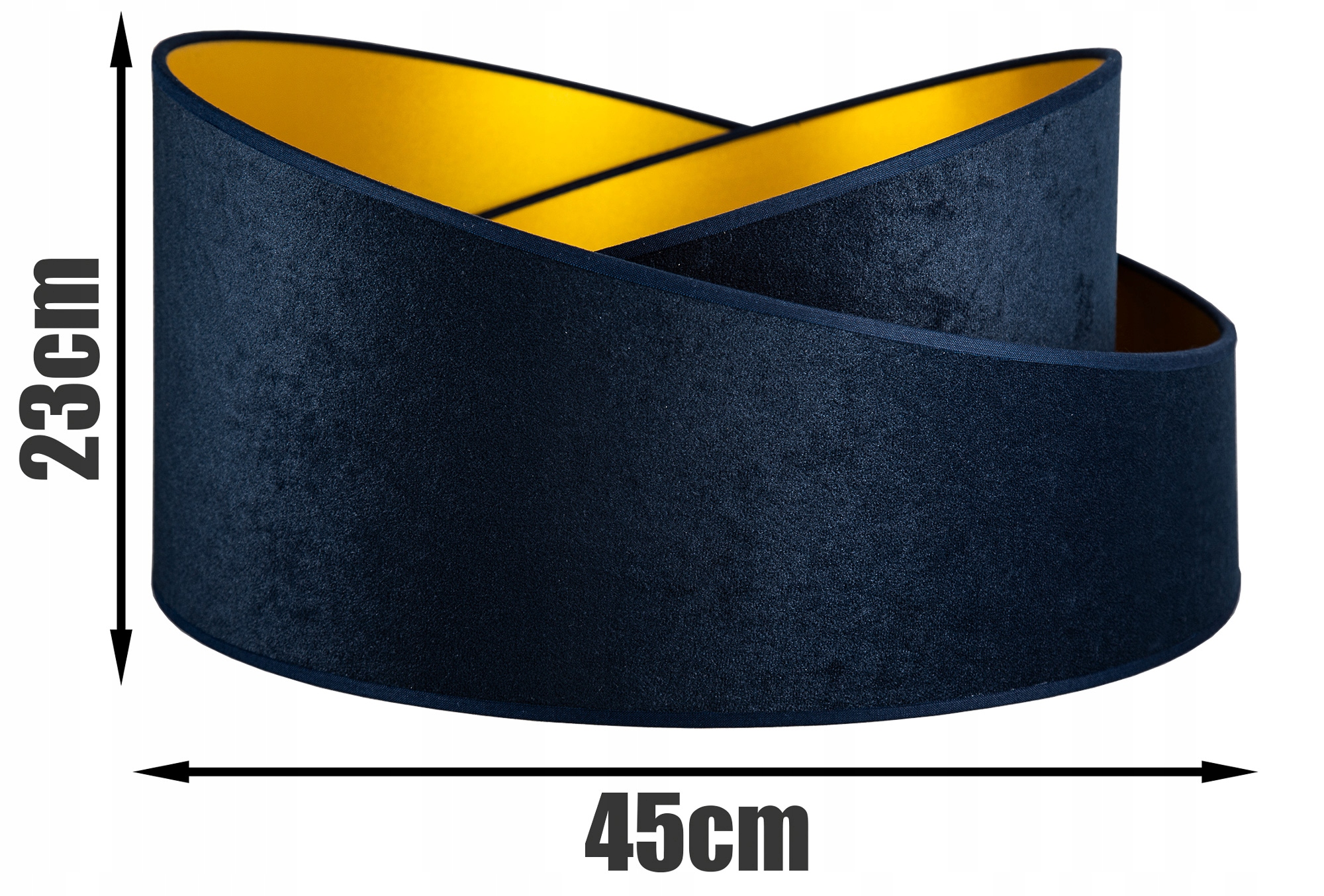 p>Абажур выполнен из двух видов материалов. Внешний материал темно-синего цвета выполнен из бархата, роскошной ткани, приятной на ощупь, а внутренний материал - ПВХ-материал матового золота.