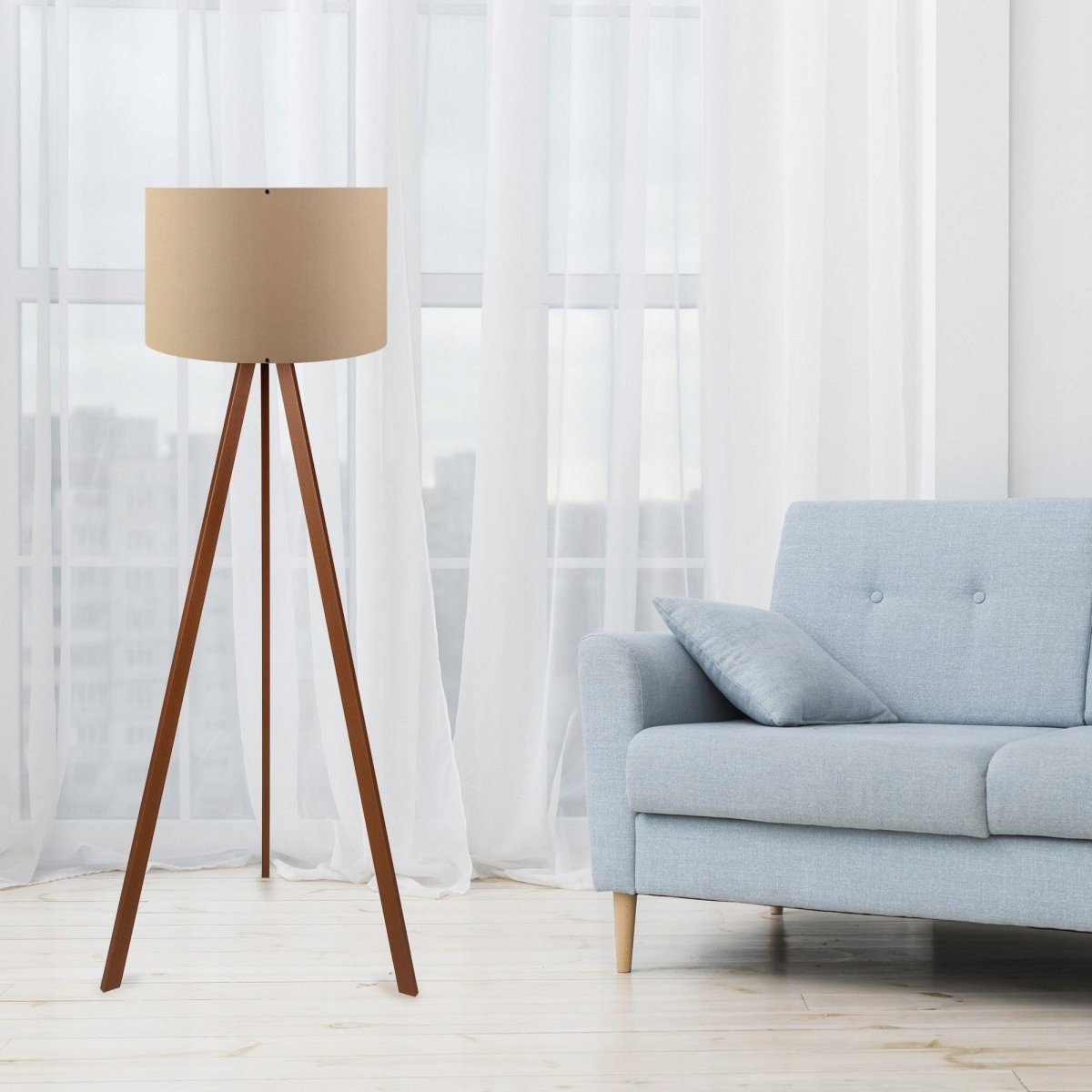 Торшер AYD порадует всех любителей современного и вневременного дизайна. Светильник состоит из корпуса из МДФ и абажура из ПВХ модного темно-бежевого цвета. Светильник подойдет к любому типу интерьера.