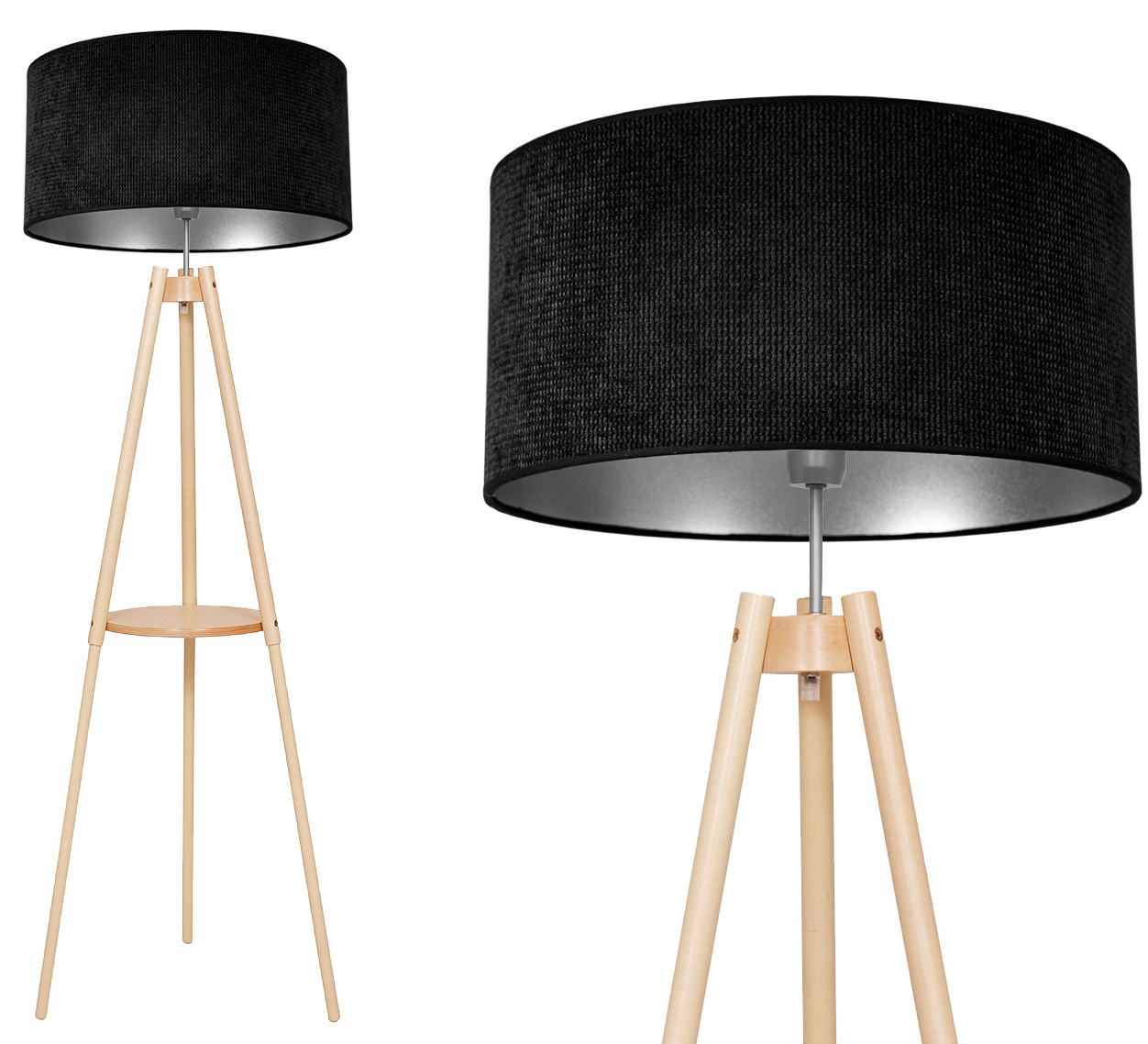 Современный деревянный торшер на трёх ножках – с абажуром из приятного на ощупь вельвета и серебристым интерьером. Дизайнерский современный стиль идеально впишется в ваше пространство. Он дополняет потолочные светильники.