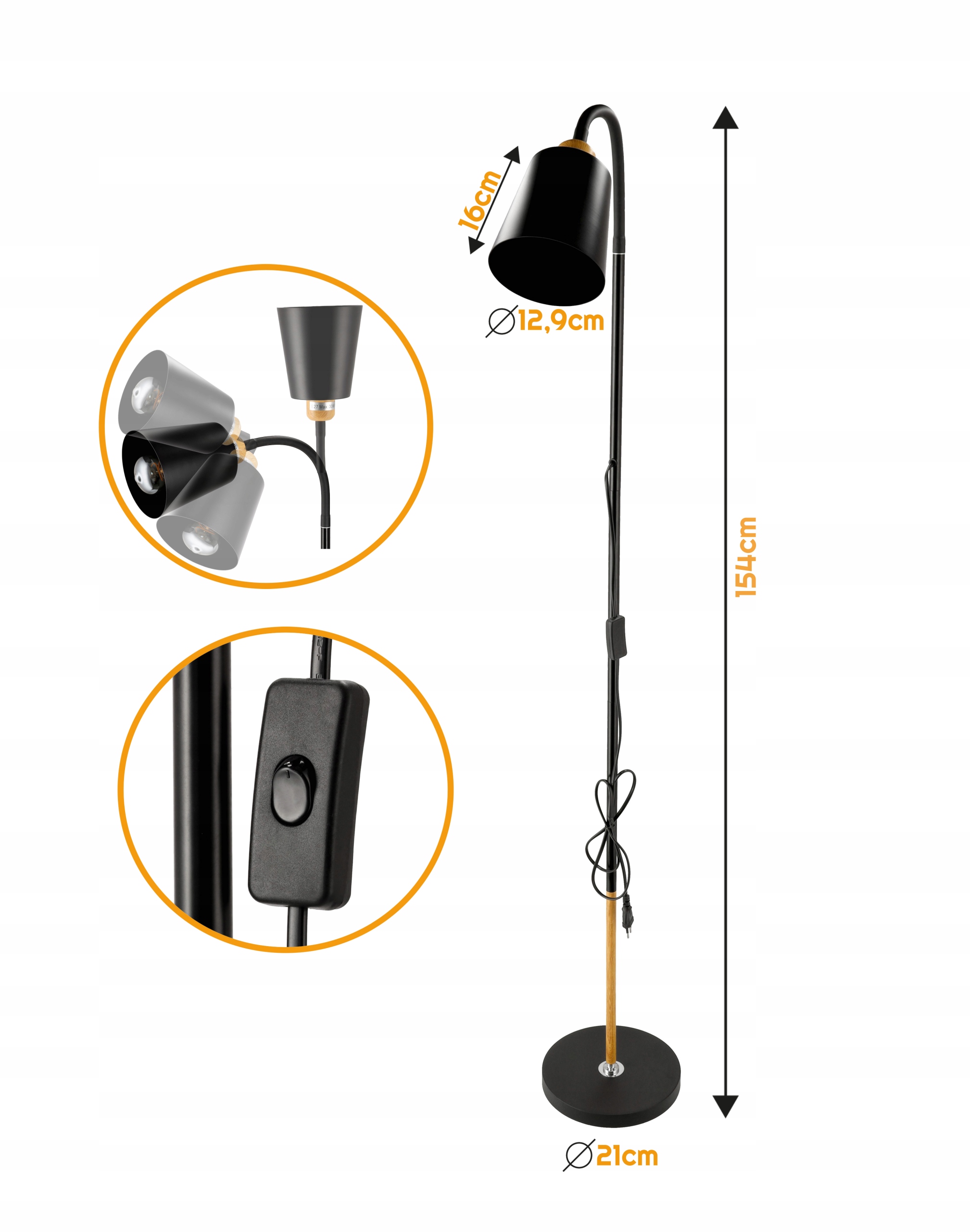 ТОРШЕР LED ЛАМПА 150CM BLACK LOFT 1xE27 з вимикачем
