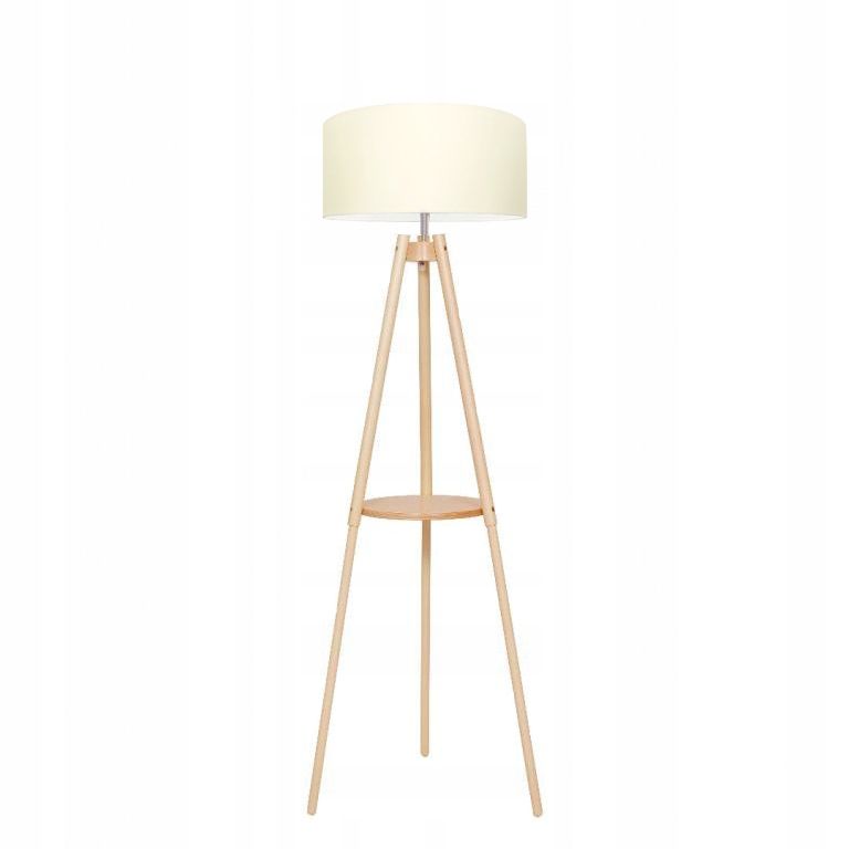 Торшер изготовлен из древесины бука. Полка, использованная в светильнике, – очень практичное и функциональное решение.