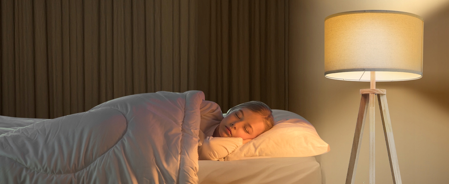Современный деревянный торшер с абажуром на трех ножках и полкой — стильное семейство светильников, изготовленных из дерева высочайшего качества.