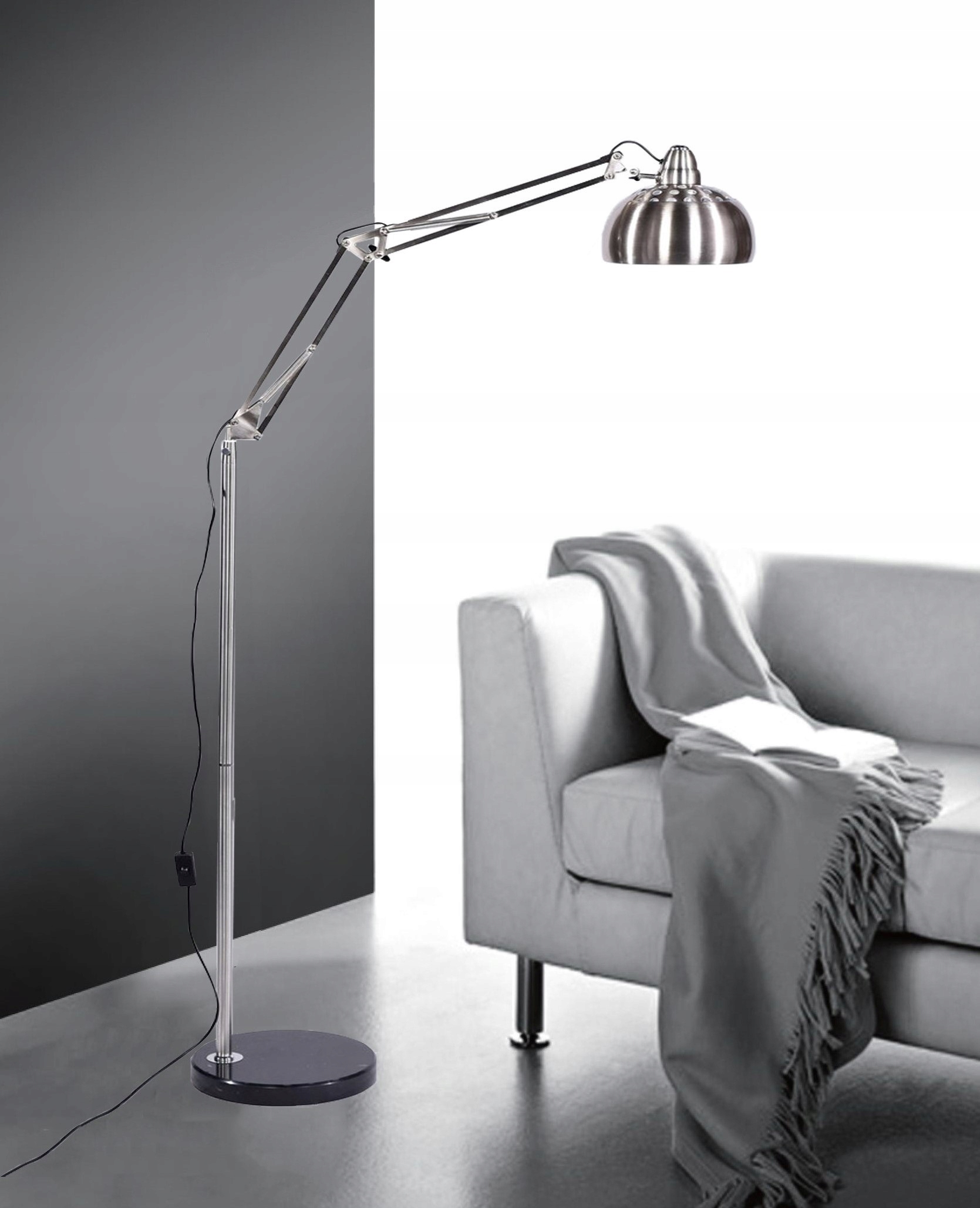 Серебристый торшер с широким диапазоном регулировок. Оригинальный светильник, похожий на напольную версию инновационных офисных ламп. Он состоит из длинного регулируемого кронштейна и куполообразного абажура, установленного на устойчивом основании. Серебристый цвет металла придает ему универсальный дизайн, прекрасно сочетающийся как с однотонными, так и с разноцветными композициями.