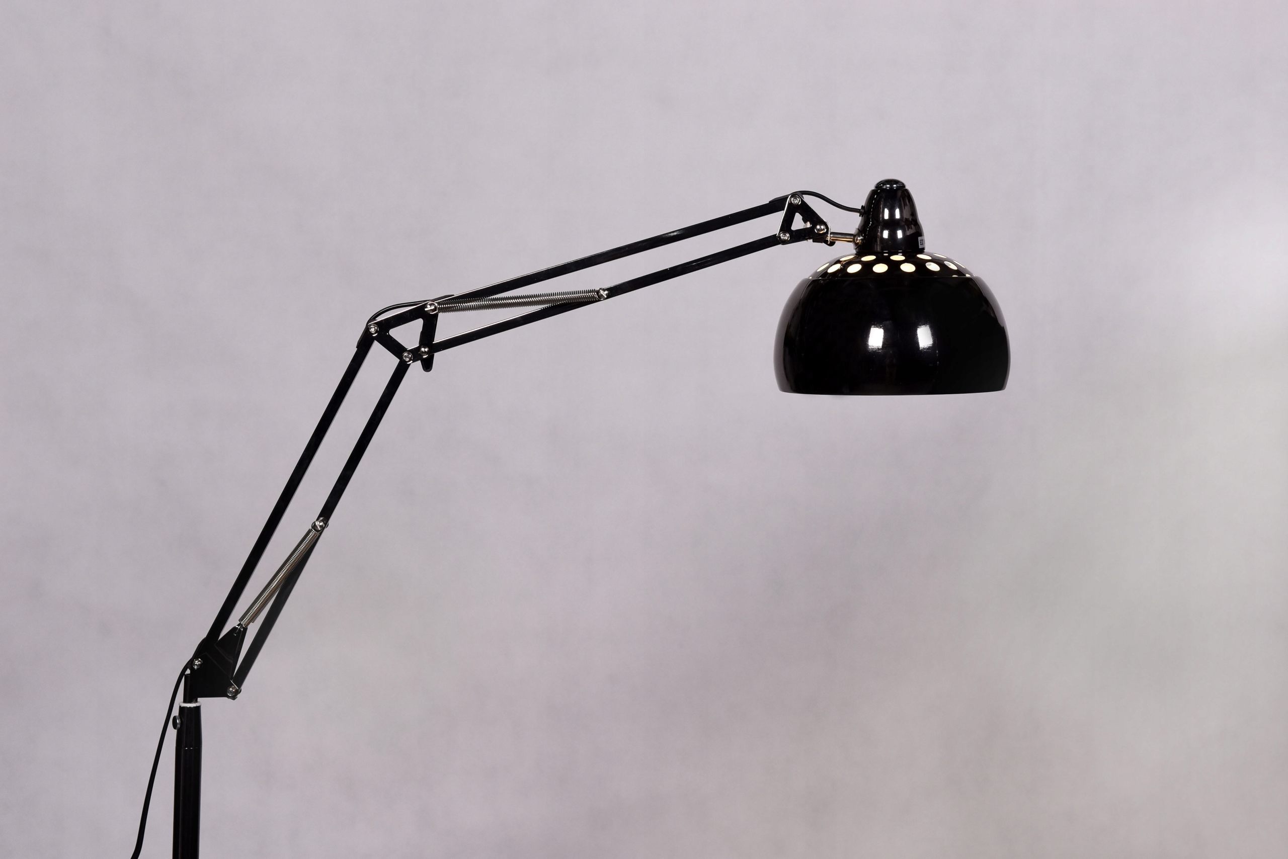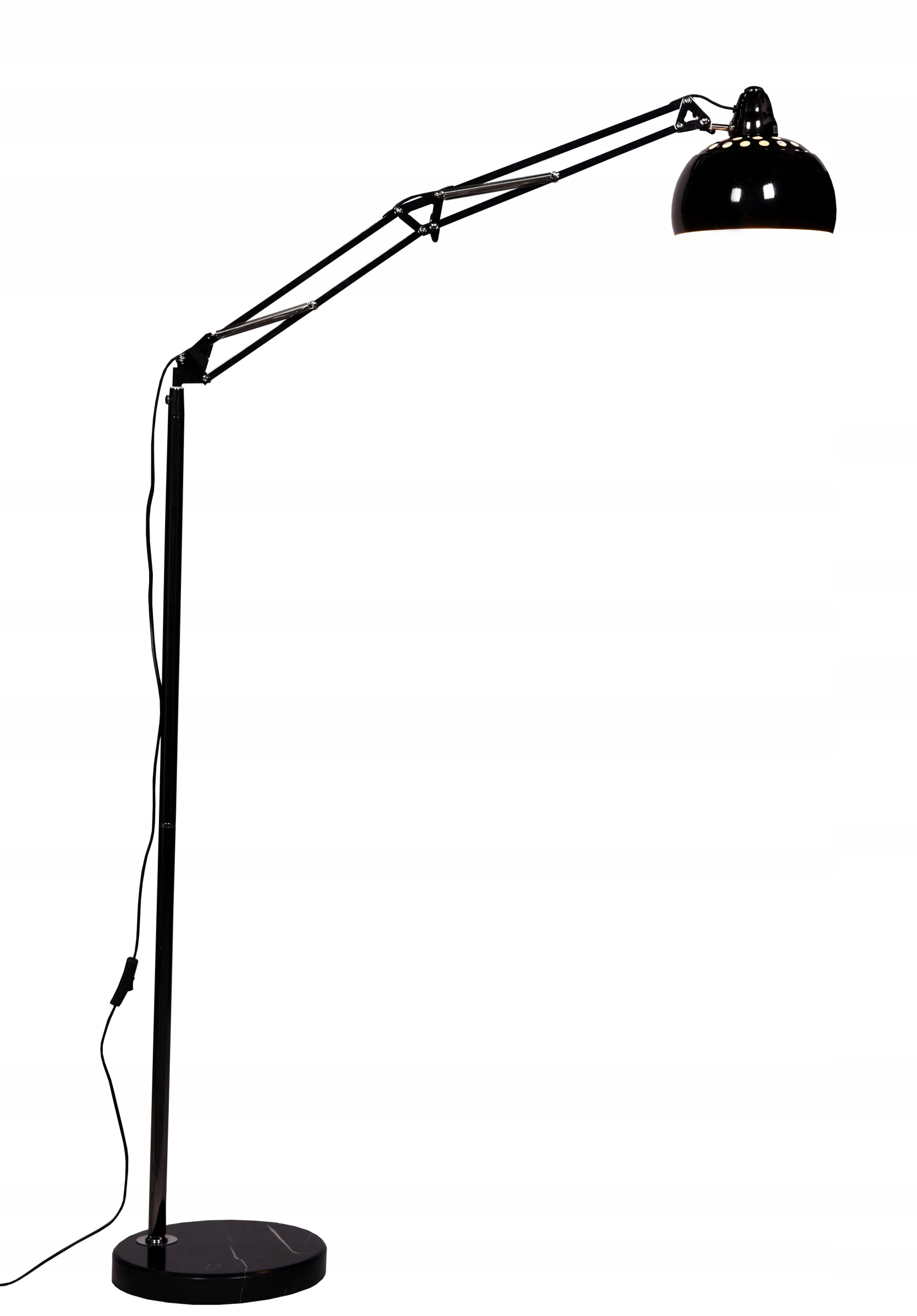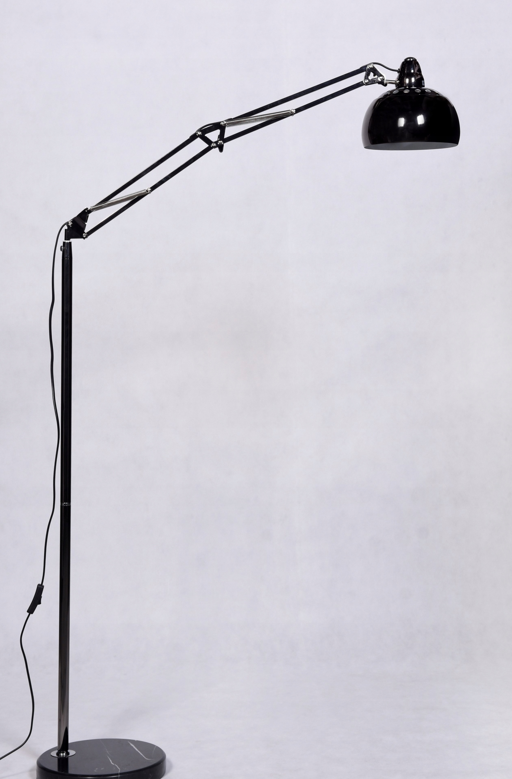 Черный рывок с регулируемым плечом - это оригинальное освещение для студии, гостиных и спален. Дизайн верхней части напоминает современные офисные лампы, с разницей в том, что она была встроена на длинную стрелу, что эффективно контрастирует с небольшим полукруглым абажуром. Производительность качественного металла обеспечивает черную модель с высокой функциональностью и полной стабильностью.