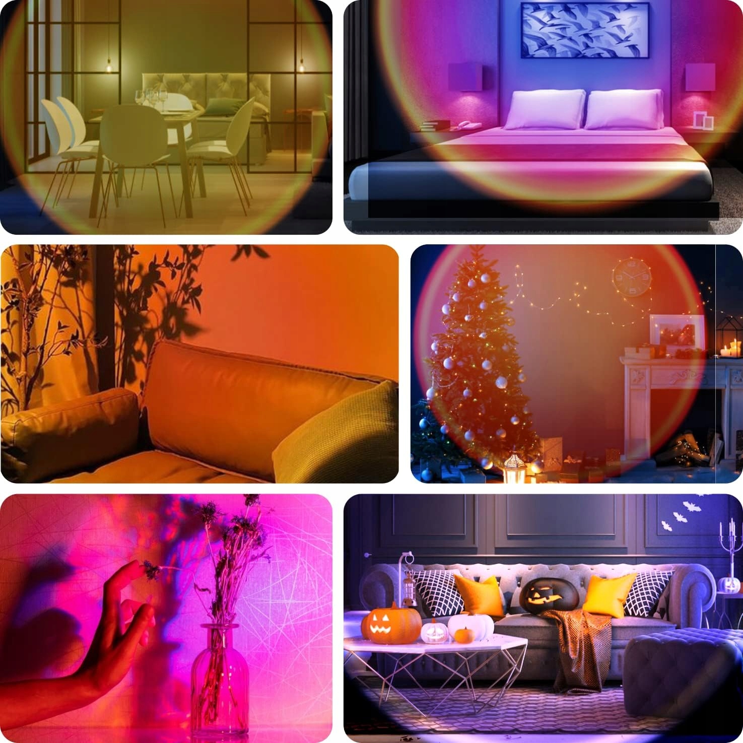 ✔️ Лампа «Закат» создает расслабляющую и творческую атмосферу, которая очаровывает и снимает стресс, встроенная лампа «Закат» со светодиодом RGB, 16 видов световых эффектов и 4 динамических режима на выбор. от, обеспечить комфортную и романтическую атмосферу. и уютная обстановка.