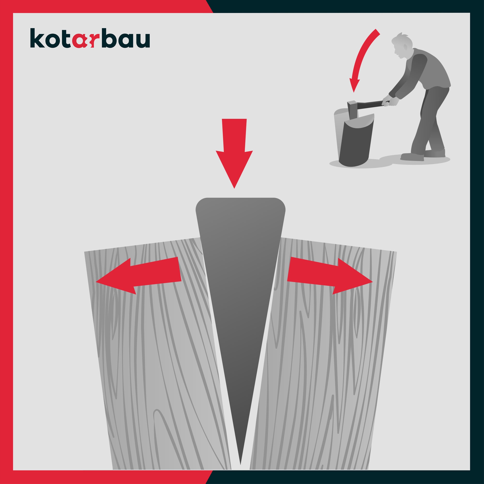 - Специально изогнутая форма изделия KOTARBAU позволяет быстрее раскалывать древесину с меньшими усилиями.