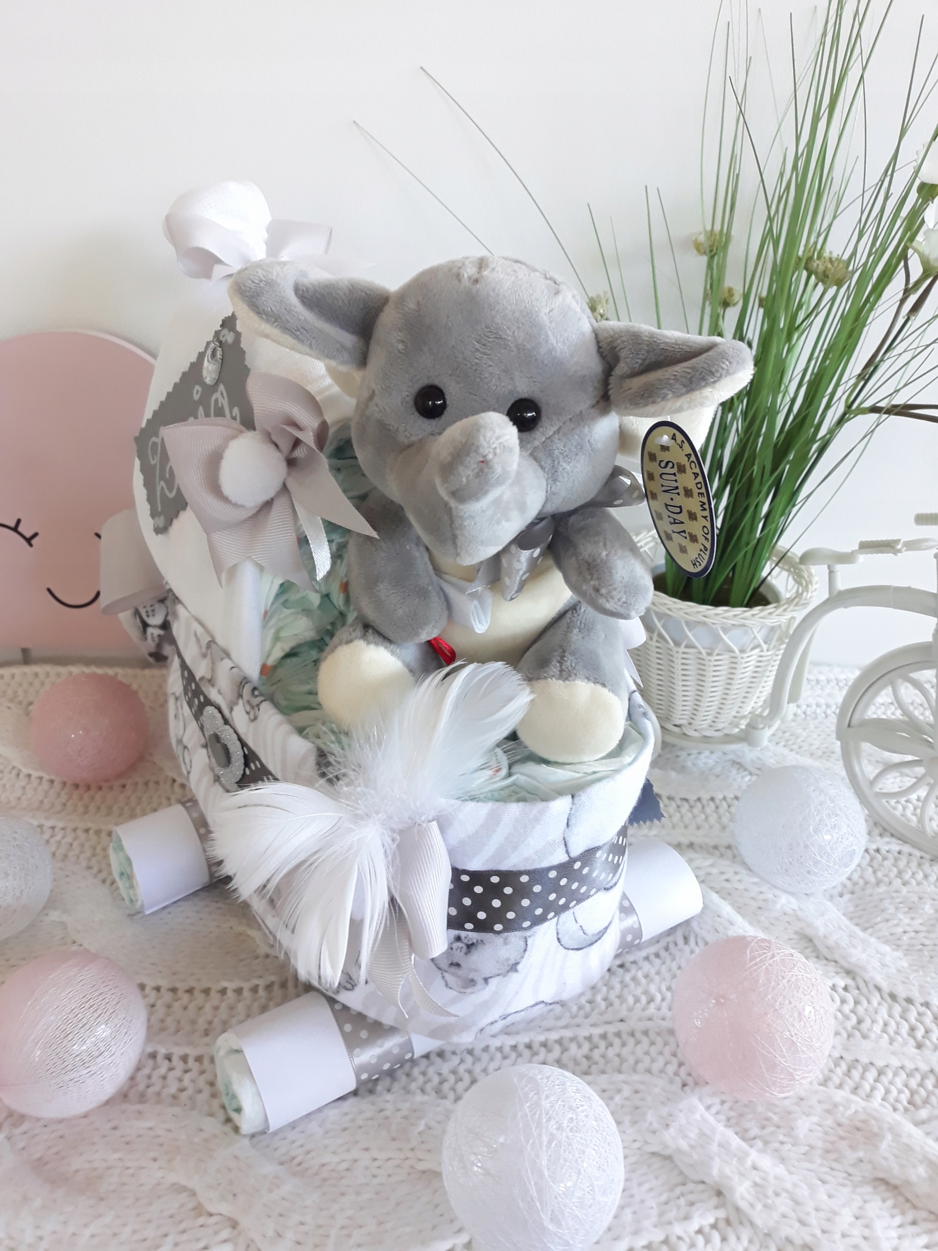 МАМА БОЛЬШАЯ НАДЕЖДА, ЧТО ПОЛУЧАТЕЛИ БУДЕТ ДОВОЛЬНЫ ЧУДЕСНОЙ КОЛЯСКОЙ СО СЛОНОКОМ ИЗ ОРИГИНАЛЬНЫХ ПОДГУЗНИКОВ PAMPERS РАЗМЕР 4