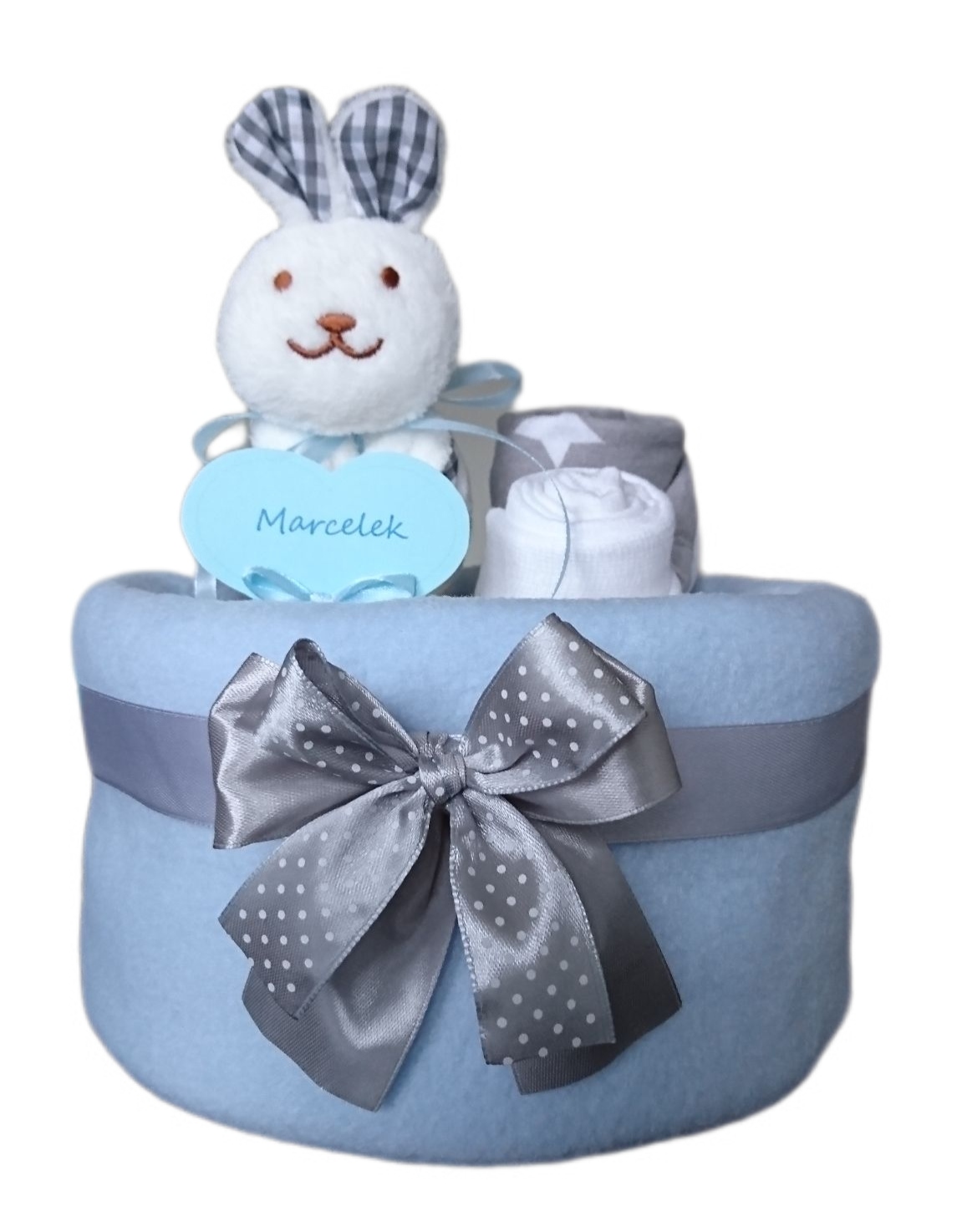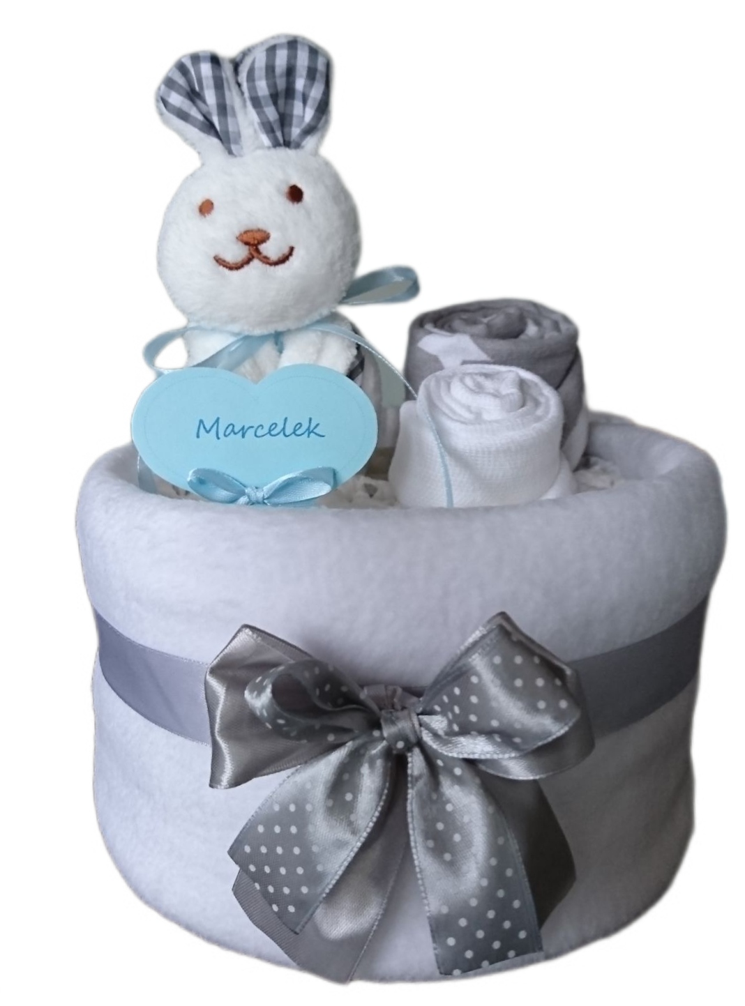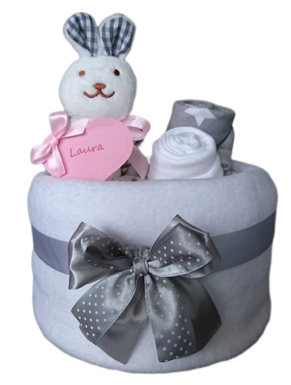 На этом аукционе мы предлагаем красивый торт из подгузников, в котором получателей ждет масса сюрпризов! 18 подгузников Pampers 2, тканевый подгузник, яркий фланелевой подгузник, нежное флисовое одеяло и прекрасная ткань - мягкая игрушка с зайчиком.