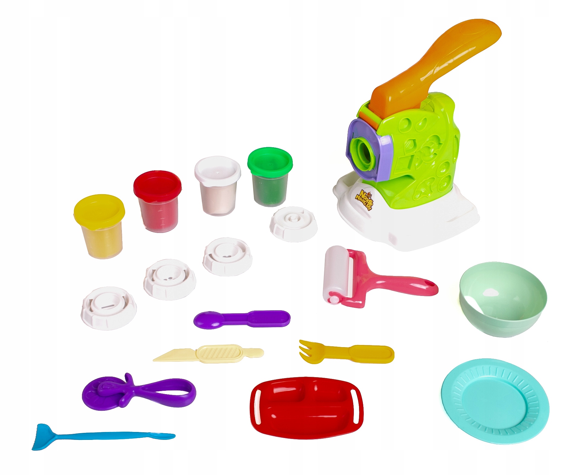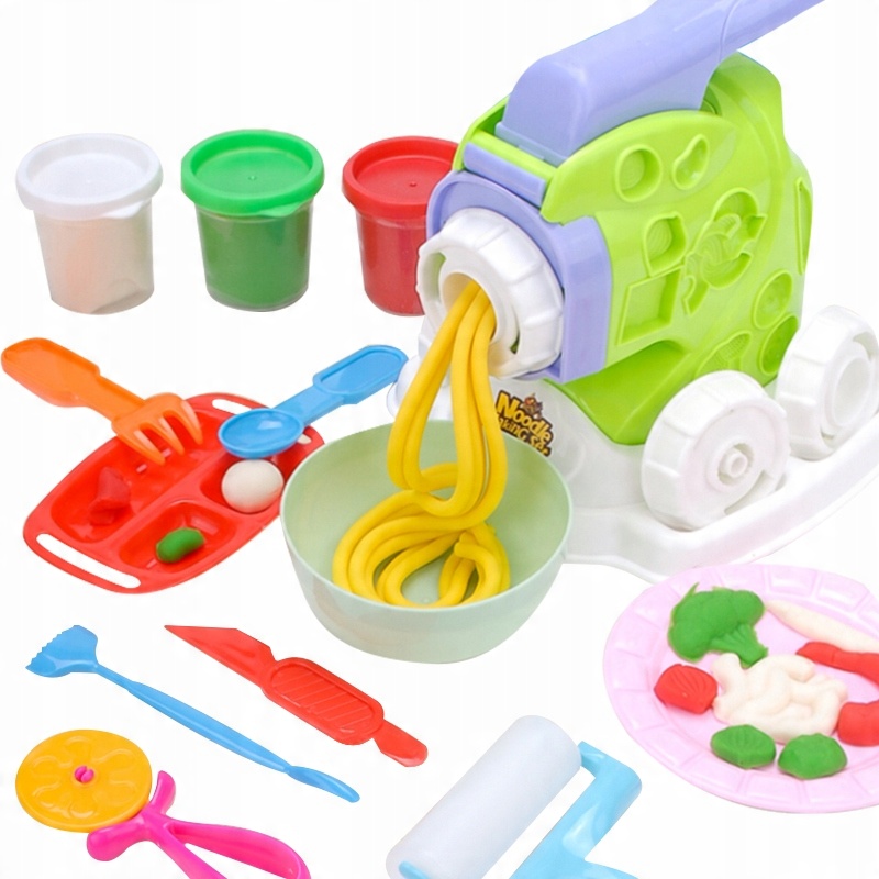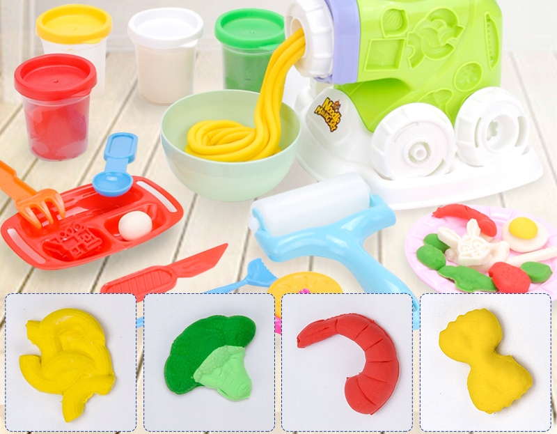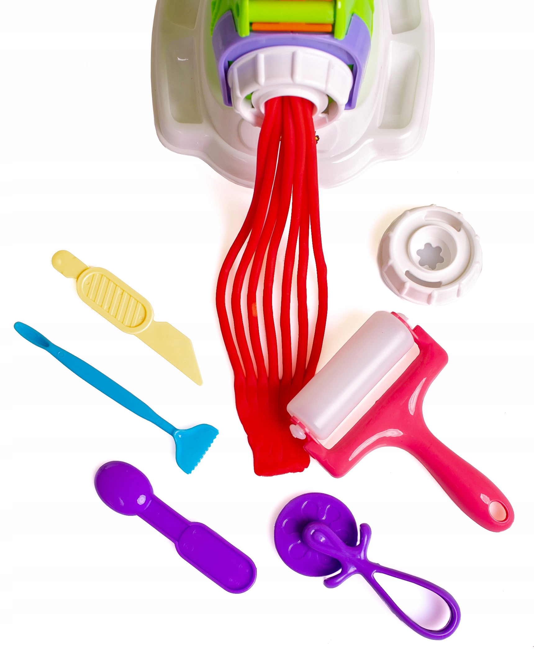 Пластичная масса для детей, состоящих из из большого количества интересных элементов b>. Играть с использованием соковыжималки и других добавок очень проста, и дает много удовольствия и удовлетворения при создании. Паста , десерты и мороженое из пластиковой массы - это очень весело разрабатывать ручные навыки, творческое мышление и воображение ребенка! По бокам бритвы специальные полости формируют формы для импринтирования, например, Форма брокколи, пасты складывает или креветки.