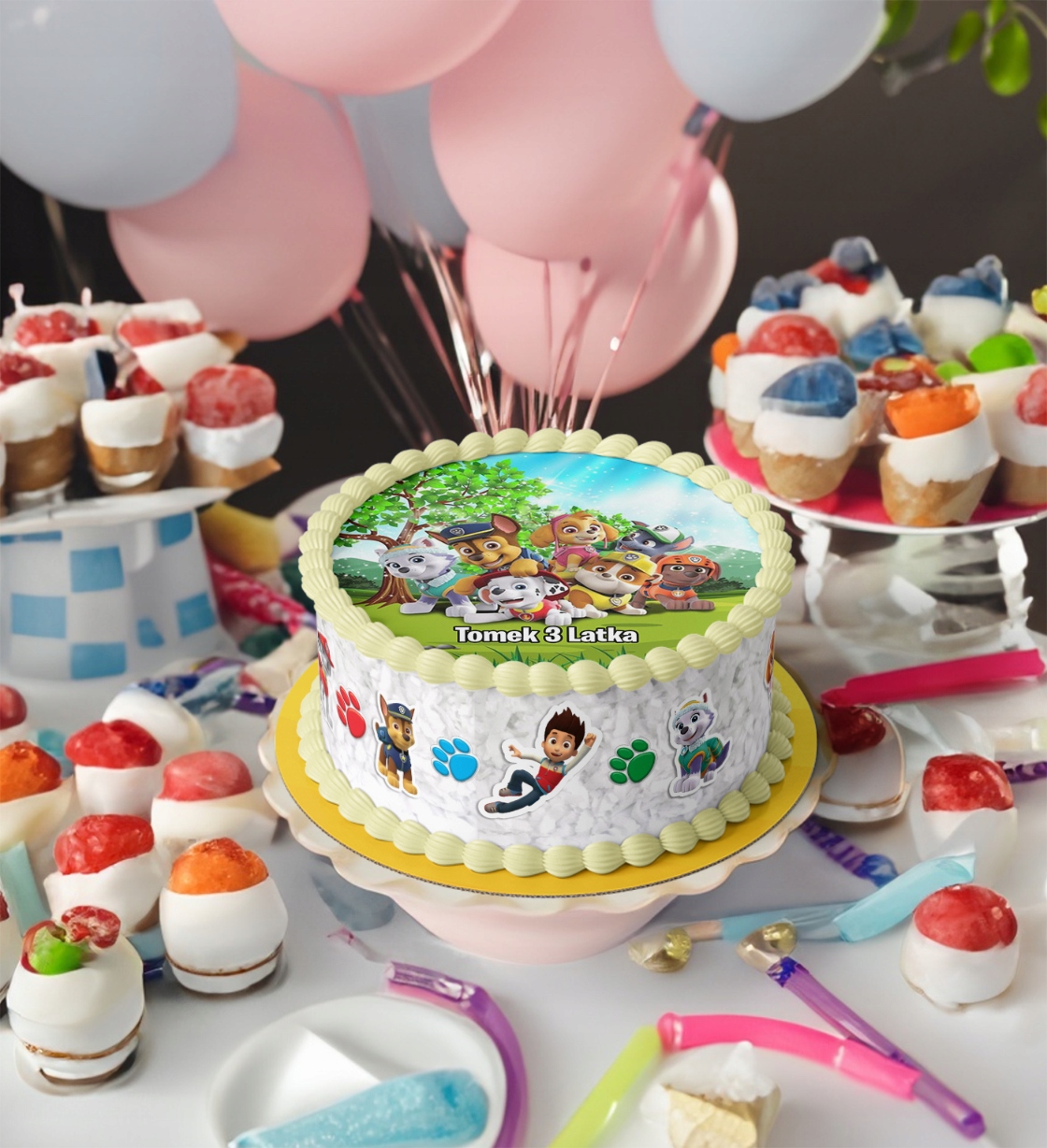 - Мы предлагаем возможность адаптации пластины к индивидуальным потребностям. Вы можете выбрать шаблон ниже «Щенячий патруль» и добавить имя и возраст ребенка. Такая персонализация делает торт уникальной и личной частью праздника.