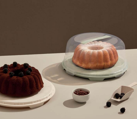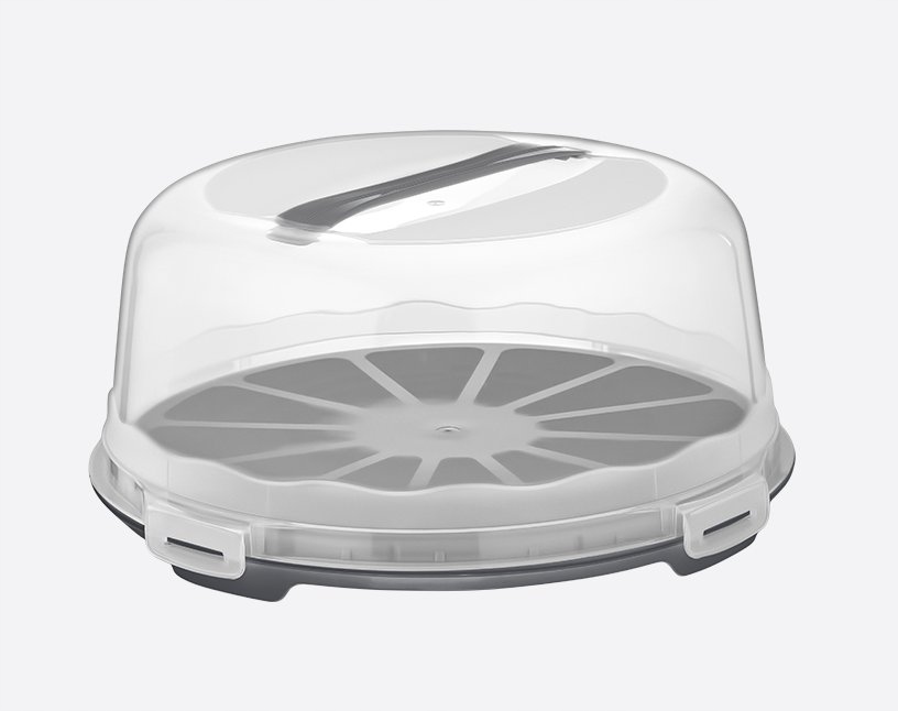 Круглый контейнер для торта очень просторный - он составляет до 30 х 15 см. Благодаря этому он подойдет большой торт, несколько порций чизкейка, брауни или другого теста.