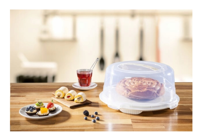 можно использовать как для хранения пирожных дома, так и для вечеринки на вечеринке. Контейнер этого типа особенно полезен, когда мы хотим наслаждаться пищей на улице - он не только защитит выпечку от сушки, но и защищает от насекомых и неблагоприятных погодных условий.