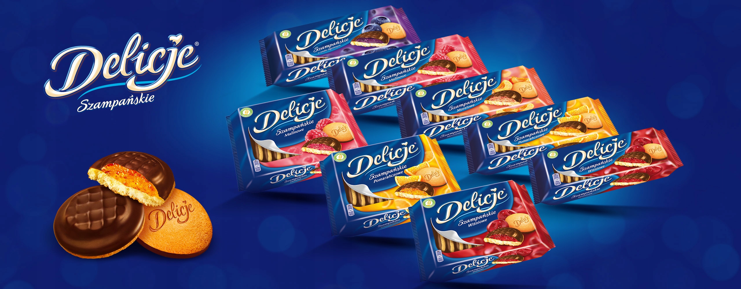 Delicje Szampańskie со вкусом вишни – это воздушные, маленькие бисквиты с ароматным вишневым желе, покрытые нежным шоколадом – оригинальное польское изделие, выпекаемое более четырех десятилетий на одной и той же фабрике в Плоньске по тщательно охраняемому рецепту.
