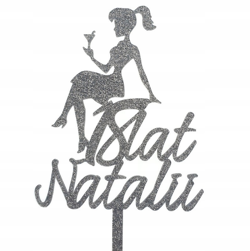Топпер для торта ЖЕНЩИНА СО СТАКАНОМ с именем возраст ИМЯ НОМЕР цвета