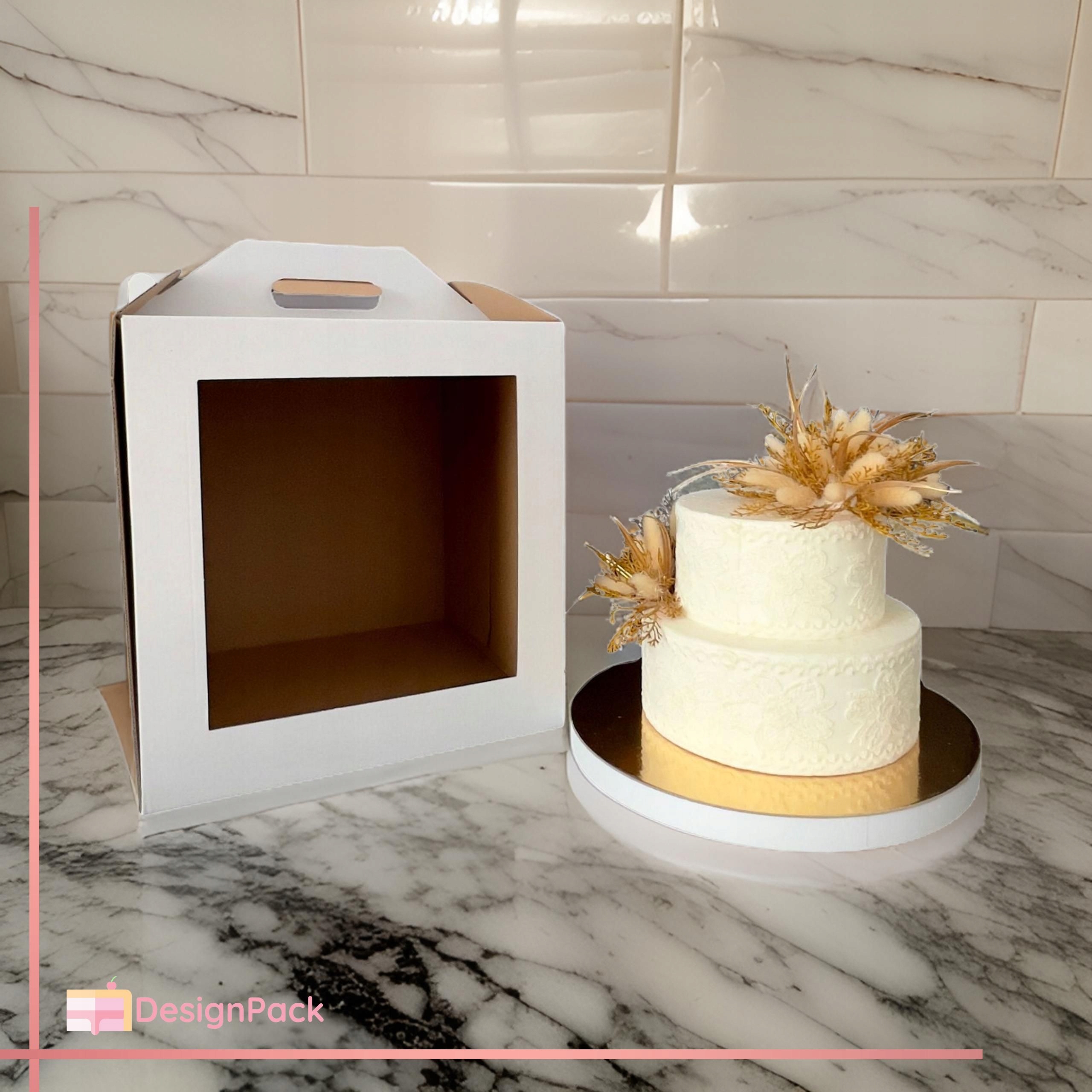 Коробка для свадебного торта 22х22х25см + золотая подставка из пенопласта 22см