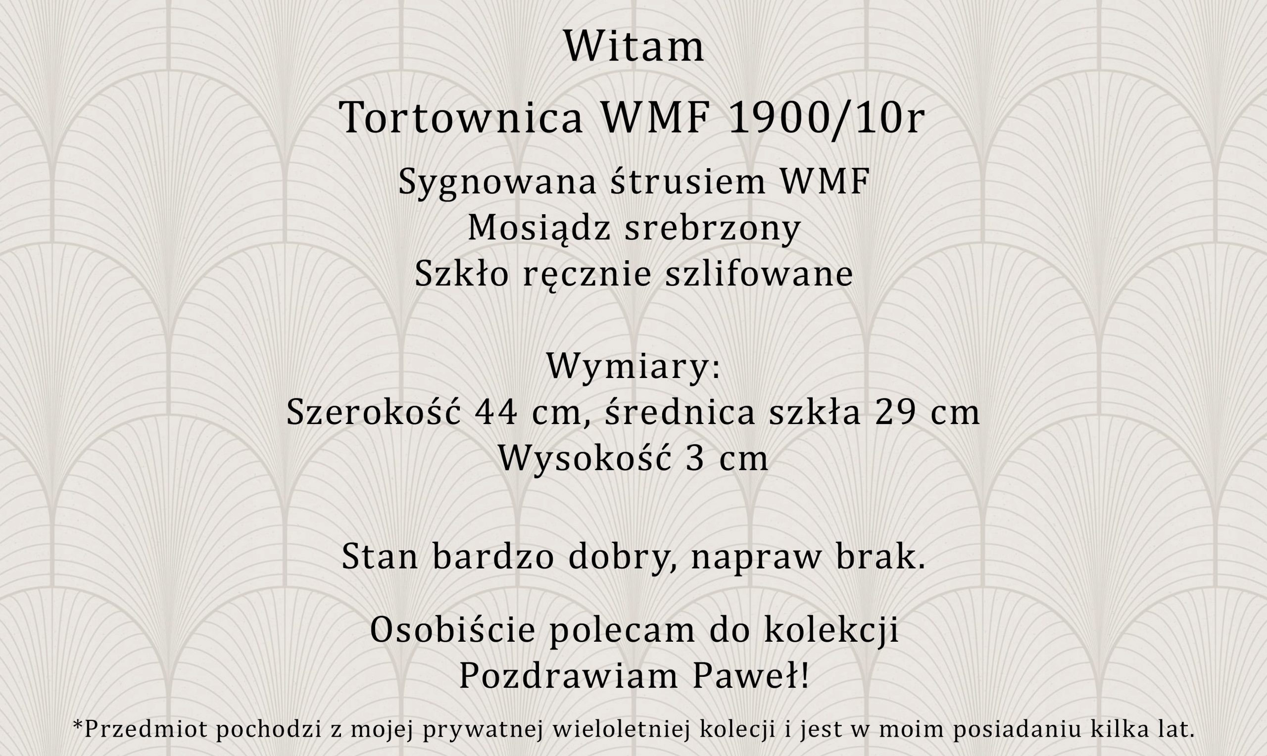 Оплачивая «УЗОР ТОРТА WMF 1900/10», вы можете быть уверены, что данный товар из каталога «Столовая посуда» будет доставлен из Польши и проверен на целостность. В цене товара, указанной на сайте, учтена доставка из Польши. Внимание!!! Товары для Евросоюза, согласно законодательству стран Евросоюза, могут отличаться упаковкой или наполнением.