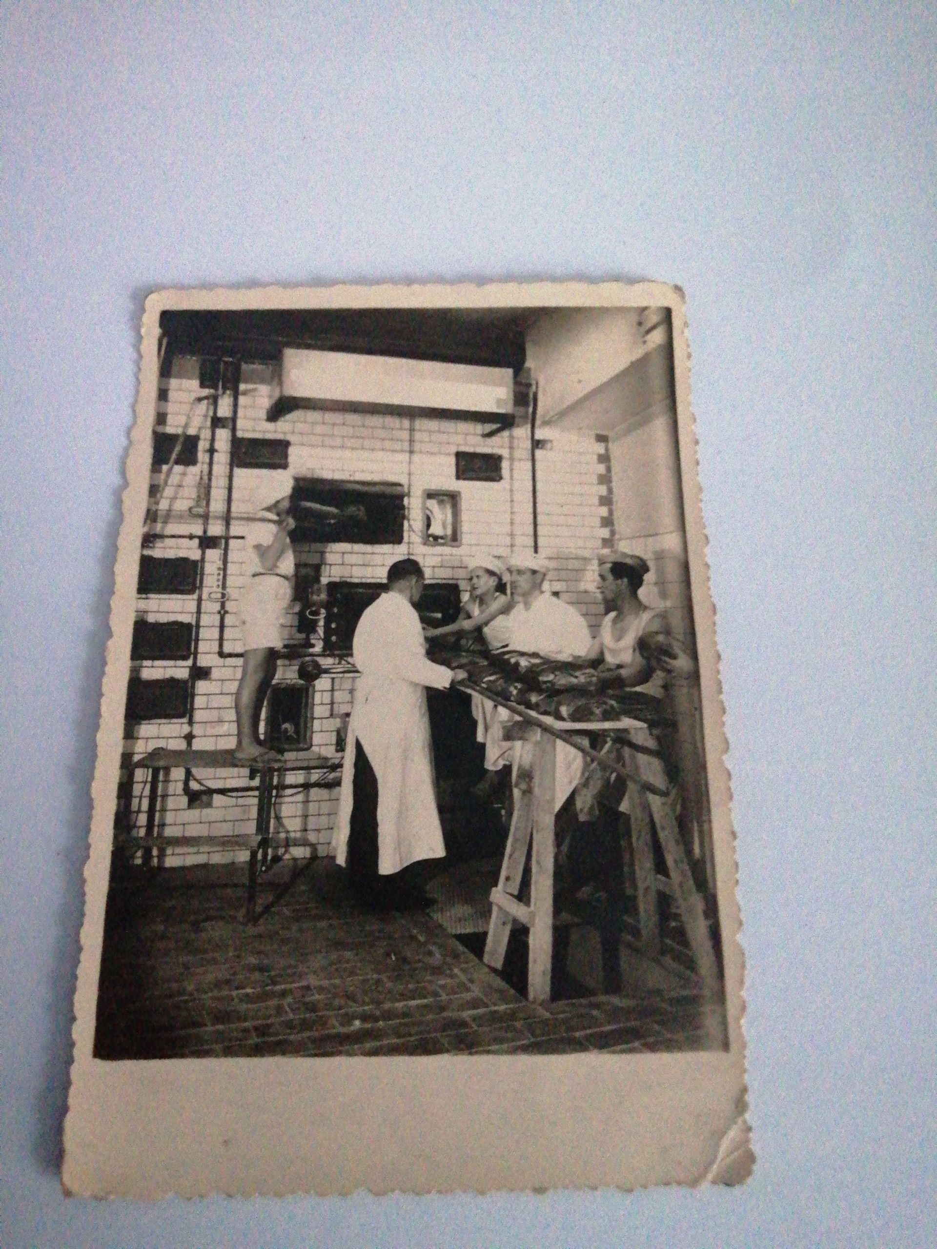 TORUŃ - 1954-PIEKARNIA PIEKARZE PRZY PIECU WYPIEKU CHLEBA SYGNOWANE