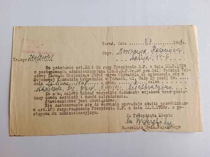ТОРУНЬ СЕРТИФІКАТ ЛИСТ АРМІЇ 1948 R 0452 D1
