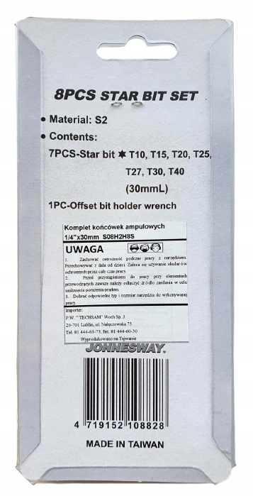 Биты Torx 1/4'x30 мм с ручкой Jonnesway