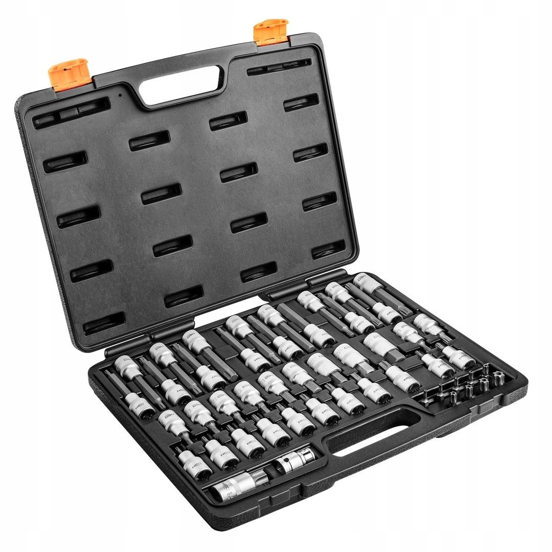 Набор битов torx neo (ссылка 08-713 ), состоящий из 49 элементов. Набор включает в себя широкий выбор битов и наложений, включая длинные биты на прикрепление размеров от H1 до H12, а T25 до T60, короткие биты на прикрепление от H5 до H19, а также на высоких капиталах. биты