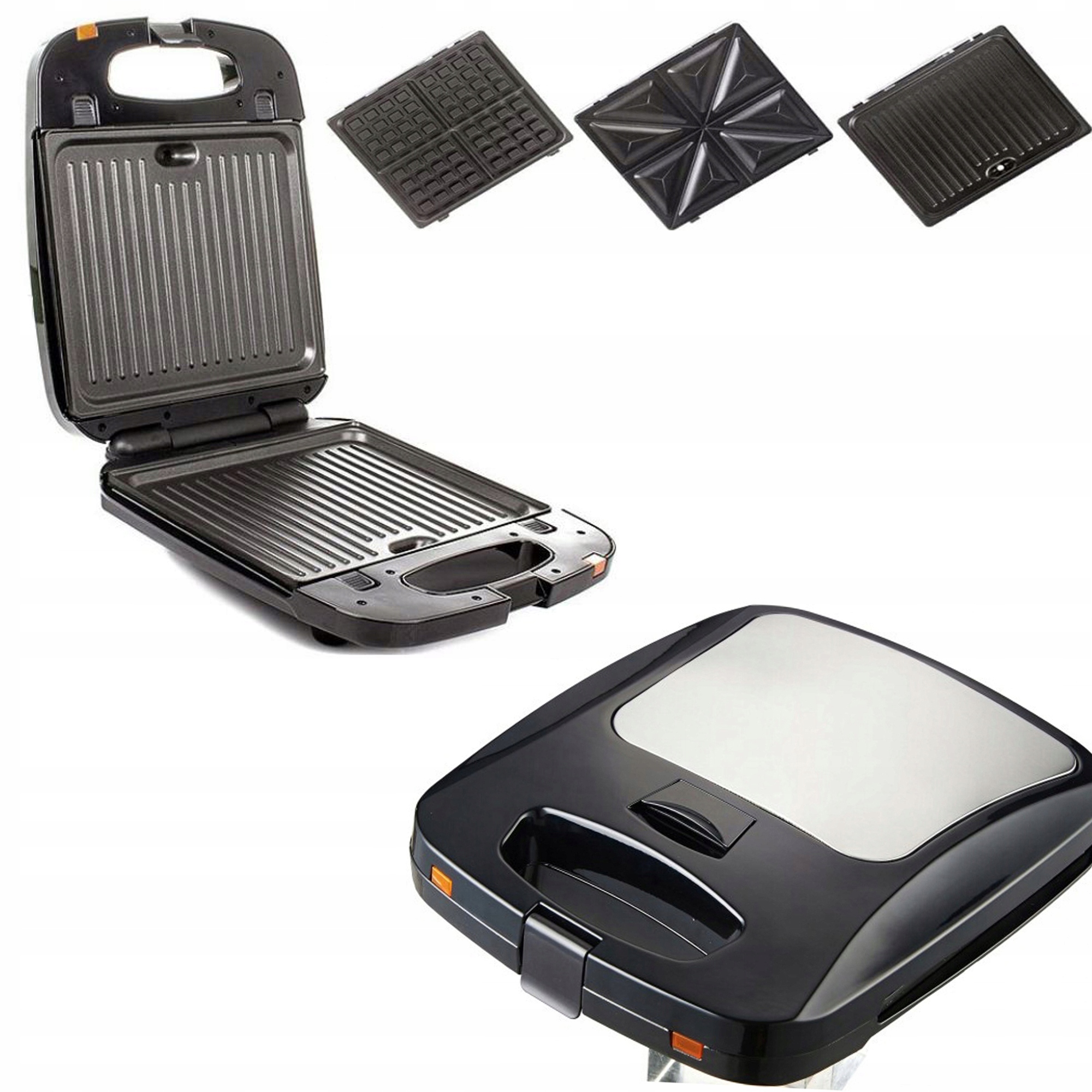 - Прибор оснащен тремя наборами сменных пластин: для сэндвичей, для вафель и для гриля, все с антипригарным покрытием. Это покрытие также облегчает очистку тостера после работы.