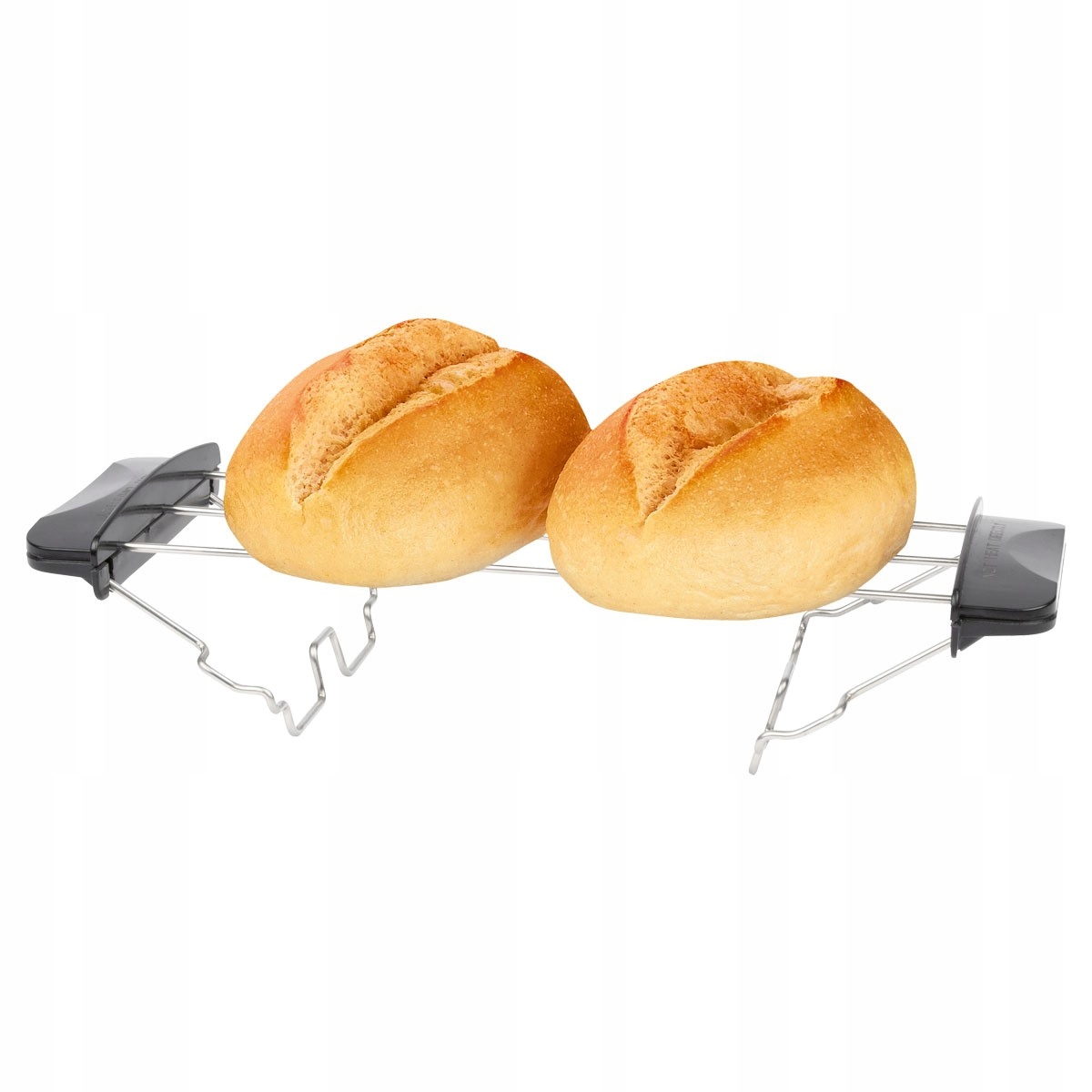 Для разогрева булочек и хлеба большего размера в комплект входит дополнительная насадка, которая размещается на устройстве. Крошки падают в выдвижной ящик, который можно быстро опорожнить, сохраняя таким образом порядок. Устройство имеет отсек для шнура питания, расположенный внизу.