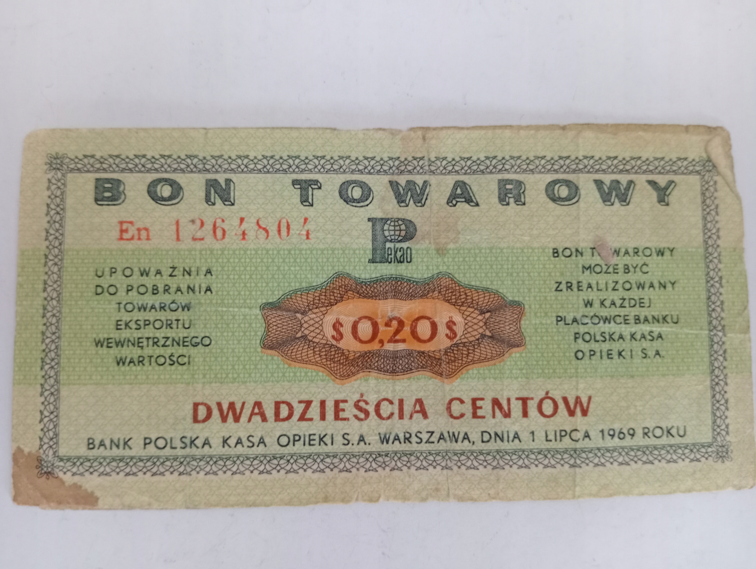 ТОВАРНИЙ БОН 20 ЦЕНТІВ 1969 серія En