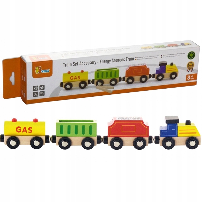 Деревянная фигурка поезда с вагонами, наполненная различными источниками энергии. Он состоит из 4-х элементов, которые соединены между собой магнитами. Он разработан уважаемым производителем деревянных игрушек Viga Toys для детей от 3 лет и идеально подходит для детского сада и дома.