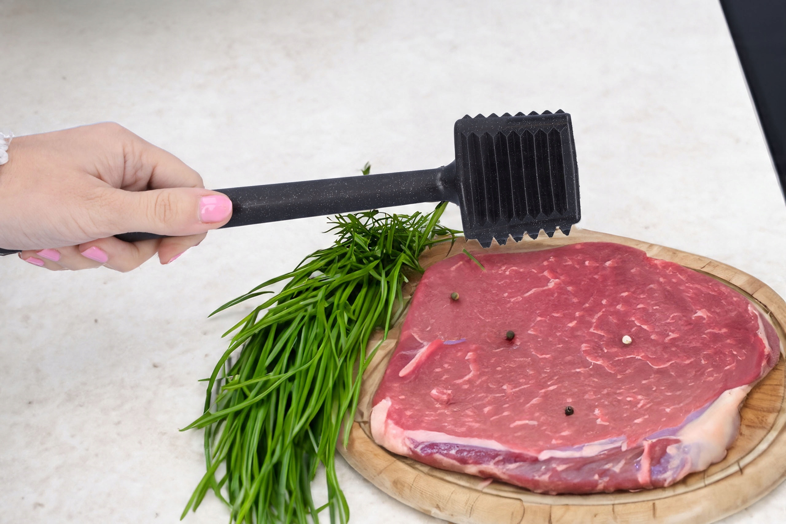✅ Многофункциональность - Этот инновационный размягчитель мяса с пятигранной головкой идеально подходит не только для размягчения мяса , но и для измельчения орехов, чеснока и картофеля.