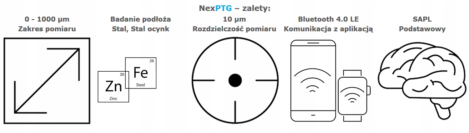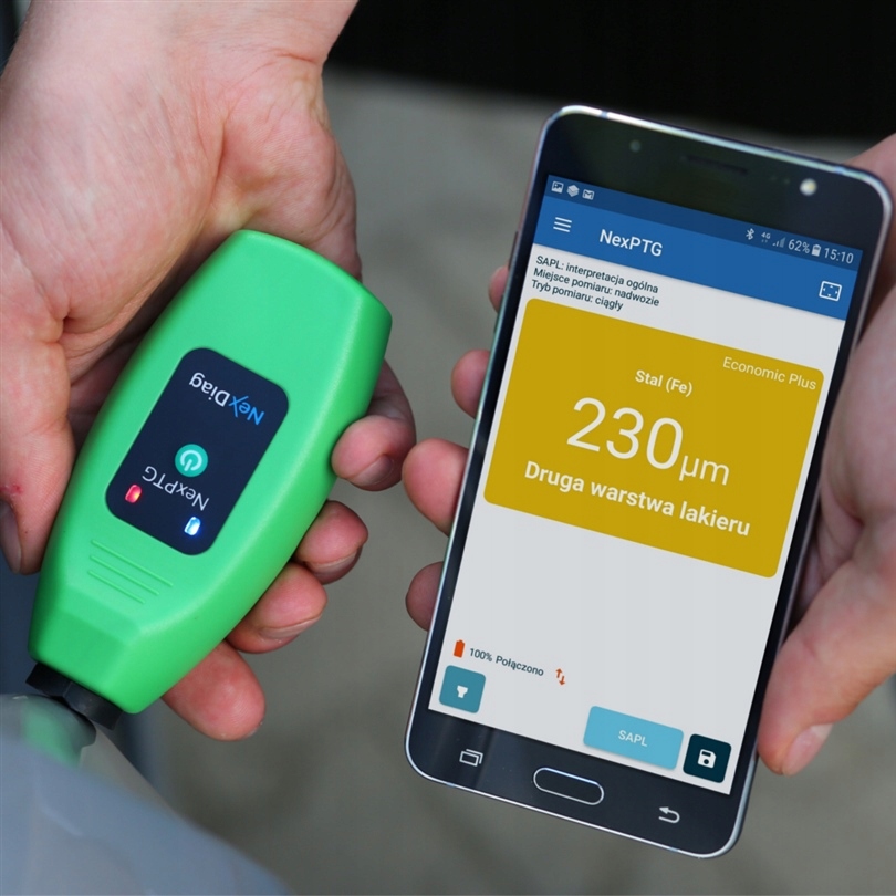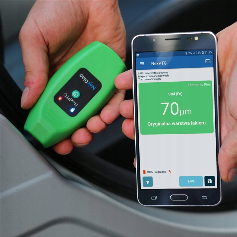 NexPTG Economic Plus — инновационный толщиномер краски, позволяющий просто и быстро измерить стальные элементы кузова автомобиля. Профилированный точечный щуп позволяет измерять закругленные элементы автомобиля. Устройство оснащено системой анализа лакокрасочного покрытия (SAPL), которая интерпретирует результаты измерений.