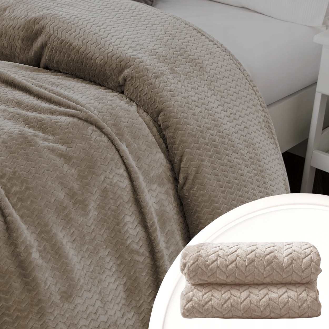 Толстая одеяло из тисненого клетки на диван -кровать 160x200 бежевая елочка